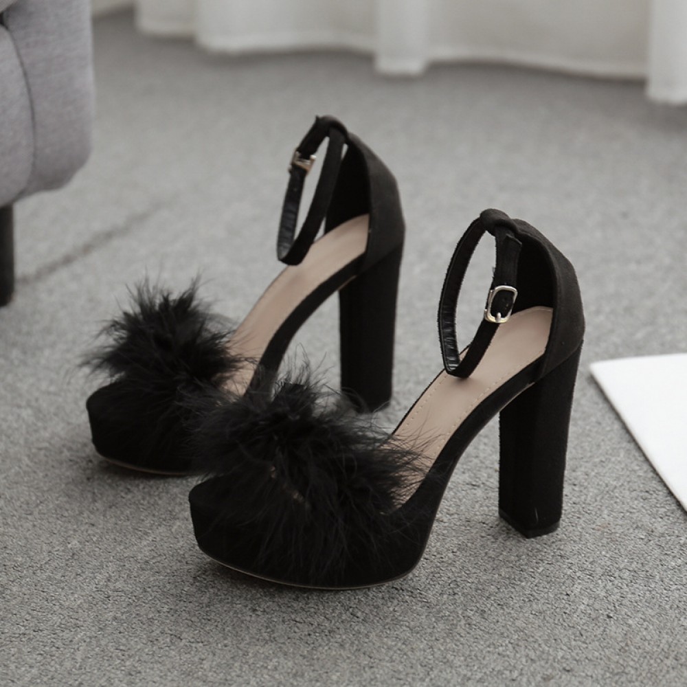 35-42 large size thick heel high heel waterproof platform word with fur decoration sandals 777-6