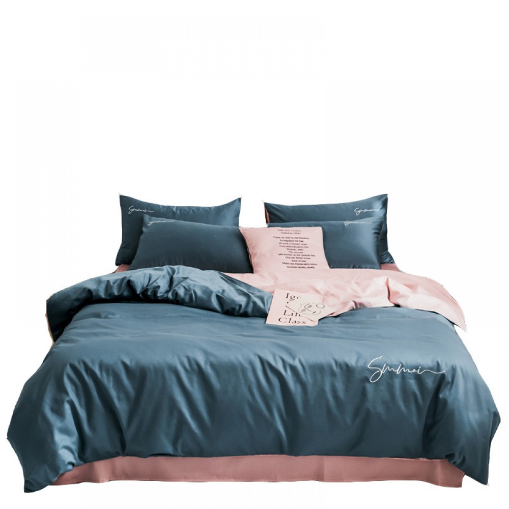 60 pieces of long-staple cotton solid color double fight embroidery four-piece set simple European cotton kit pure cotton bedding