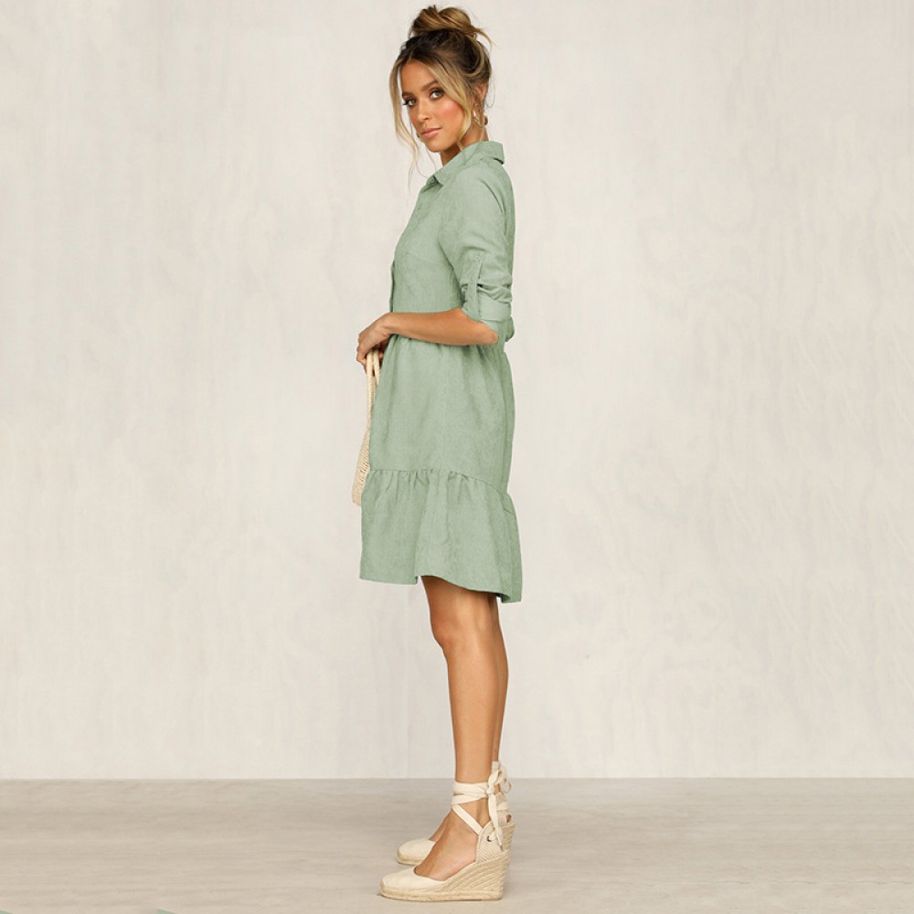 Autumn and winter big swing lapel single-breasted shirt female dress mid-sleeved solid color woven