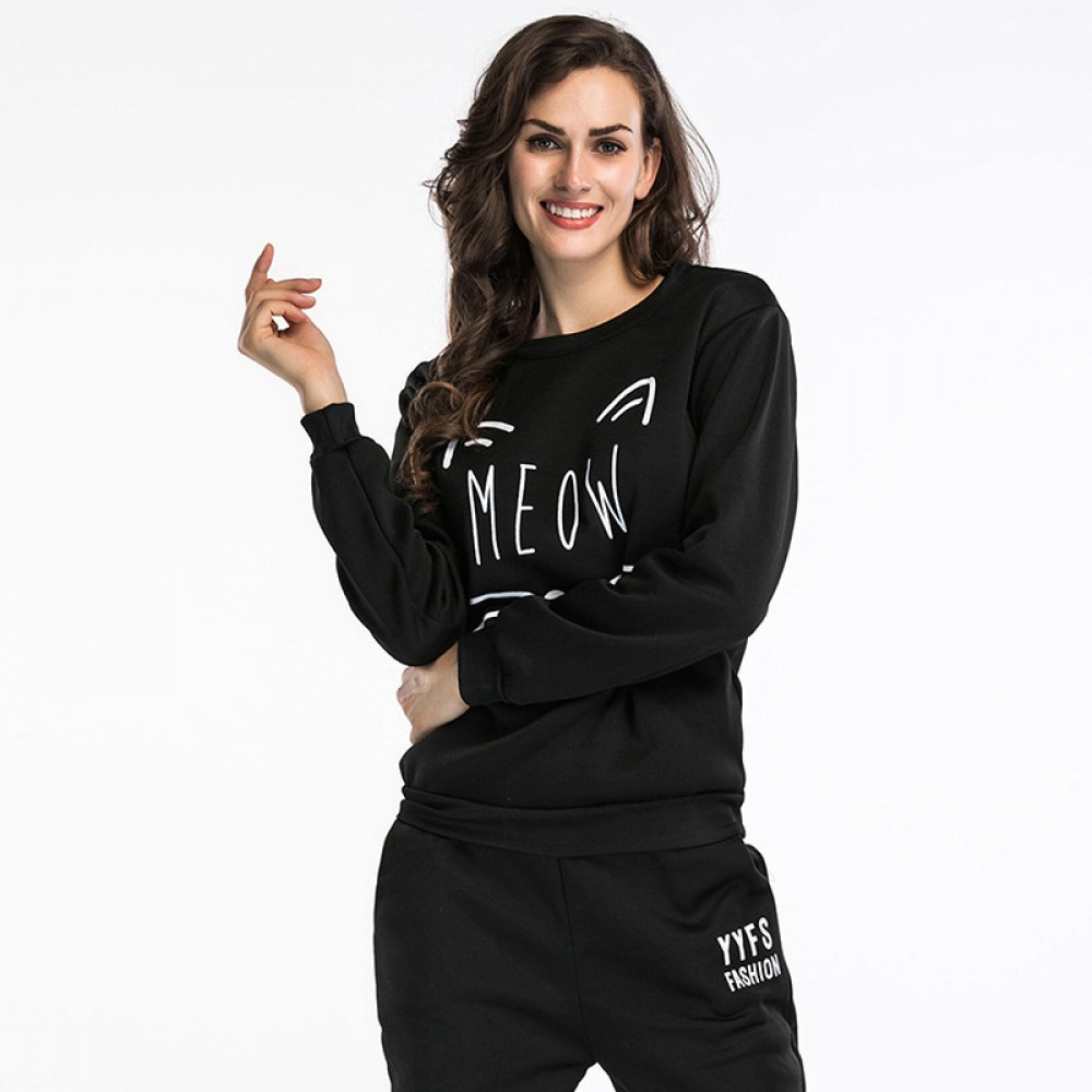 Autumn and winter new hooded sweater women's long-sleeved cat ears letter printed large size shirt