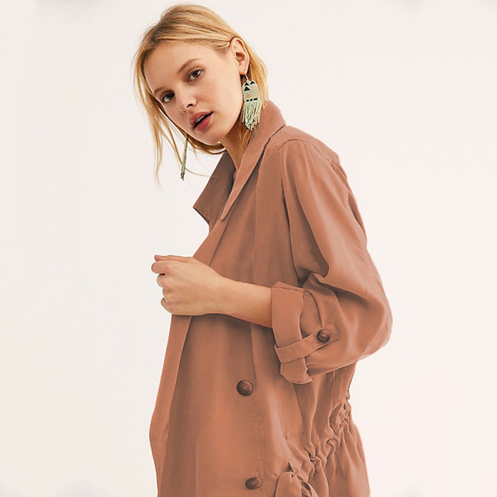 Autumn and winter new solid color short paragraph lapel windbreaker jacket nine-point sleeve fashion women