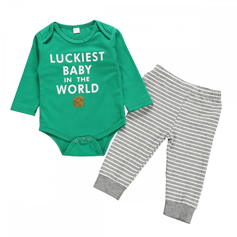 Baby autumn new product green long-sleeved triangle khaki female baby striped trousers children's two-piece suit