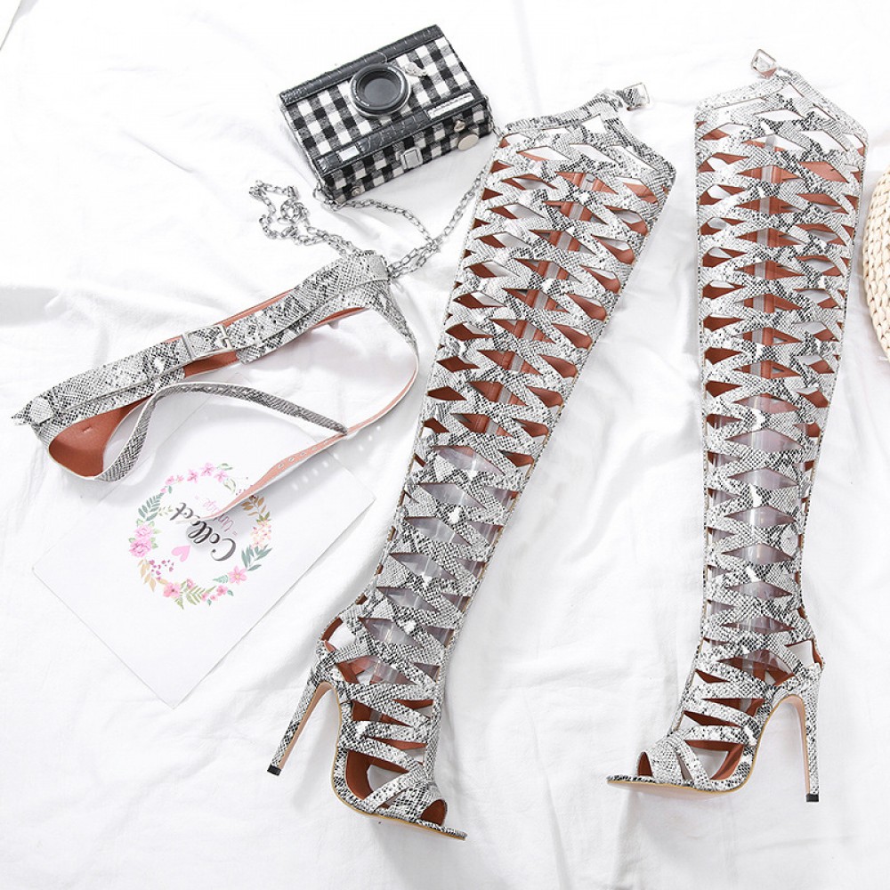 Belt Buckle Hollow Fish Mouth Cool Boots Snake Pattern High Heel Sandals 35-40