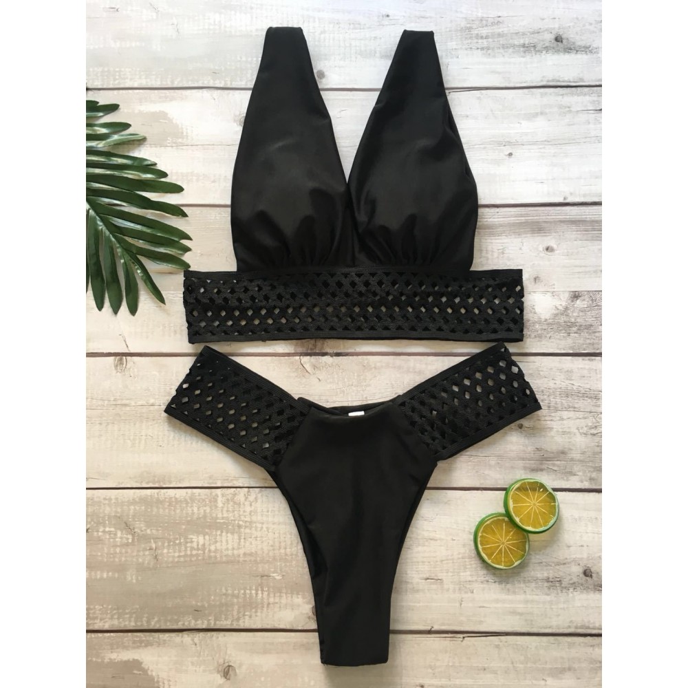 Bikini new black mesh swimsuit female sense swimsuit solid color