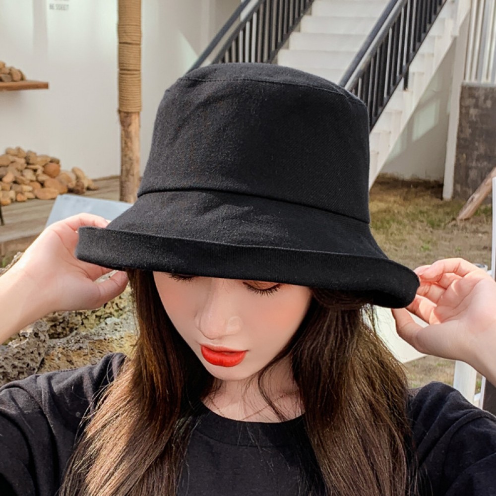 Black fisherman hat female summer small fresh small edge flanging sunscreen sun hat sun hat male tide