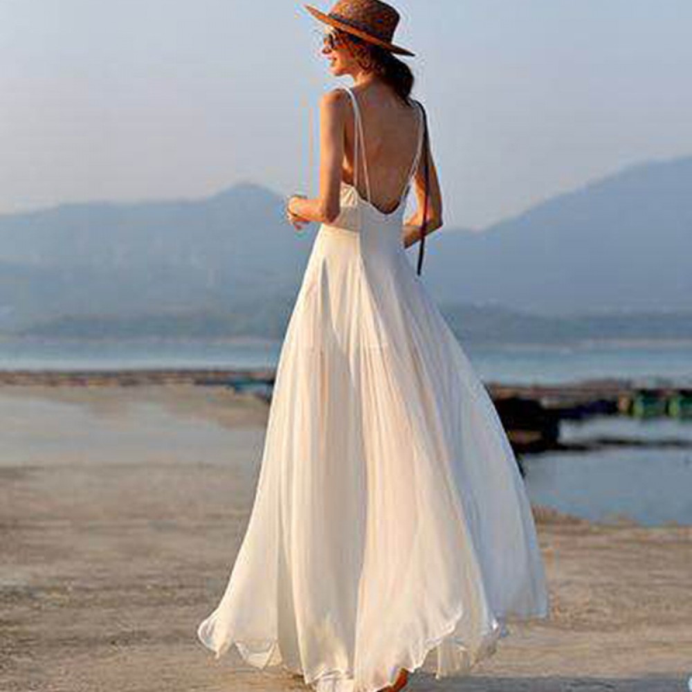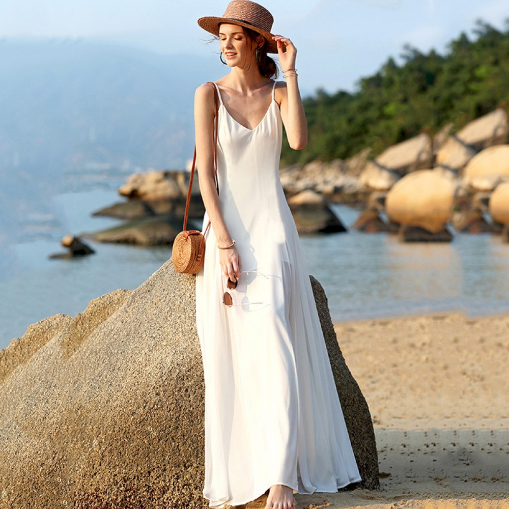 Bohemian solid color suspenders fairy long swing dress women's hot dress