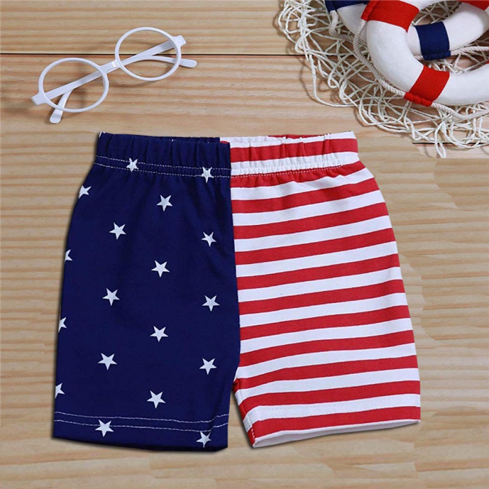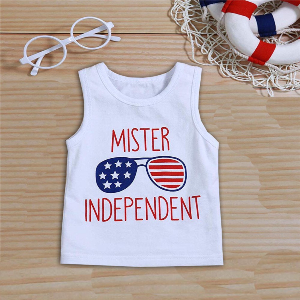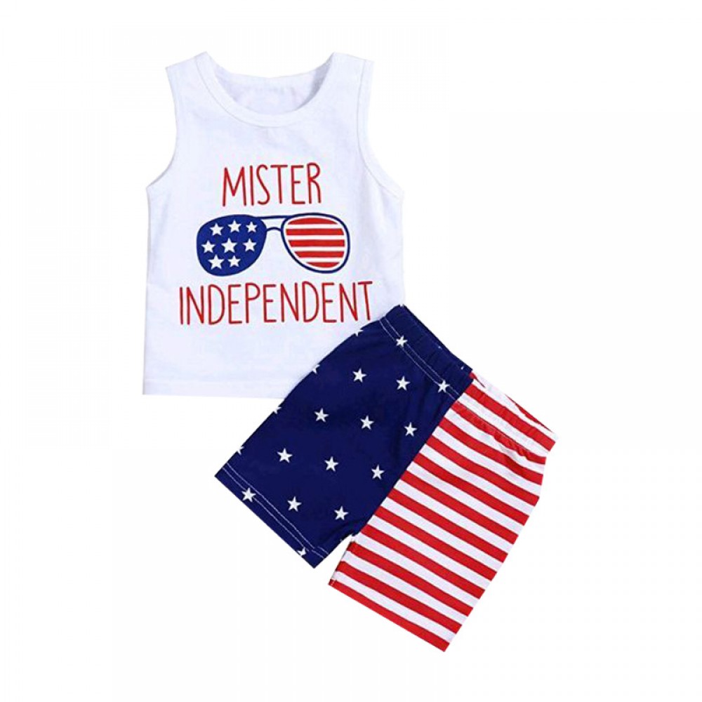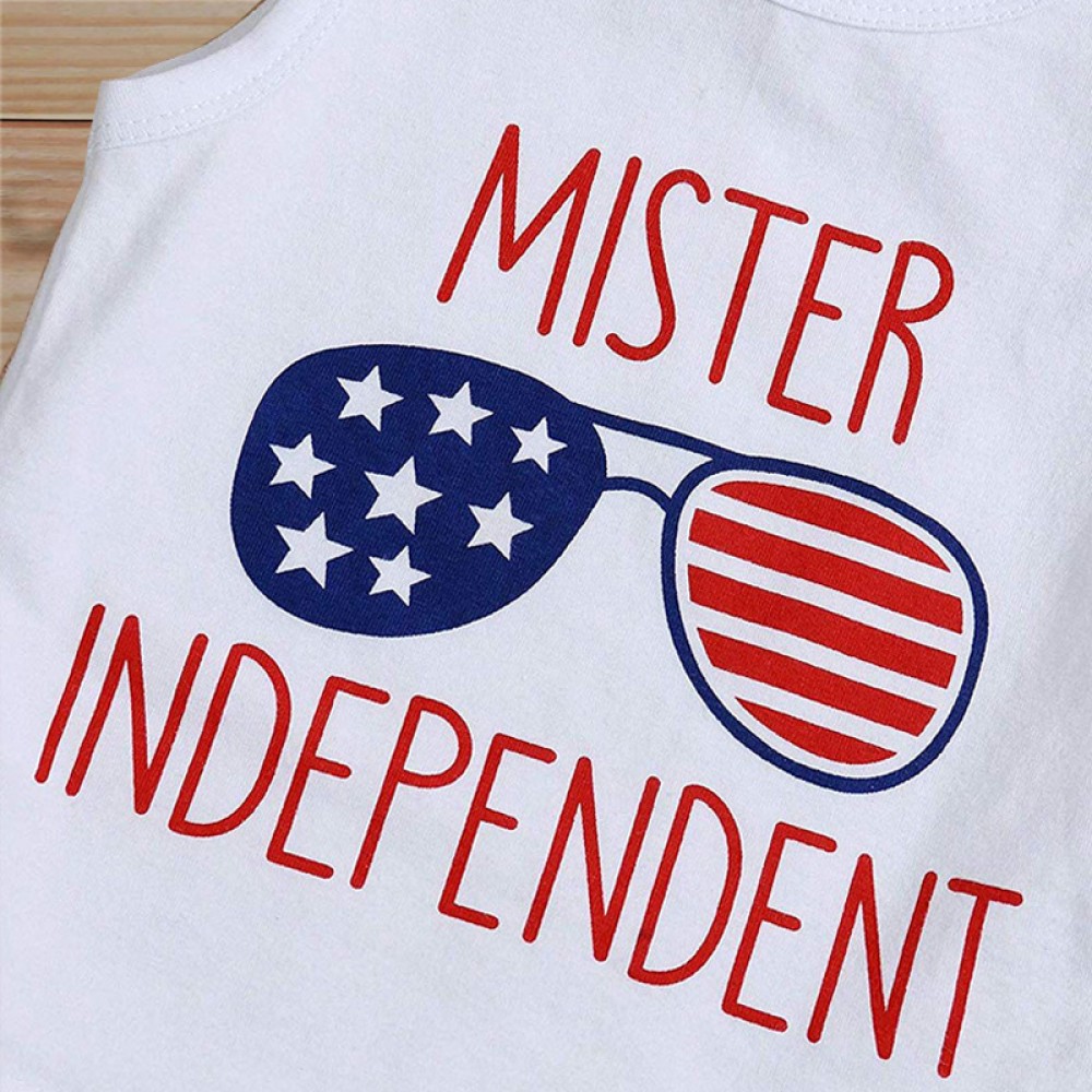 Boys Summer New Letter Print Sleeveless Top Striped Shorts Two-Piece Independence Day Suit
