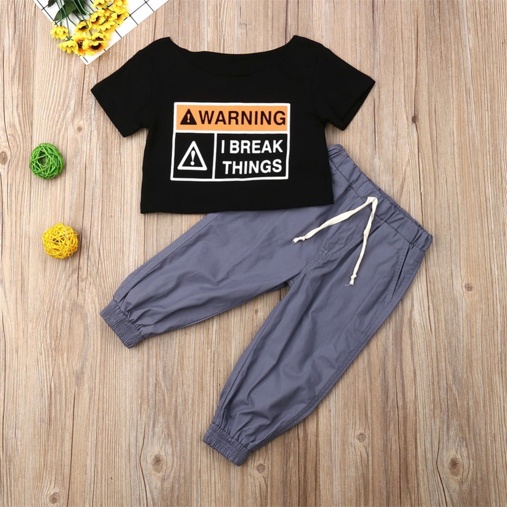 Casual children's clothing summer new girl short-sleeved letter black shirt solid color trousers two-piece suit