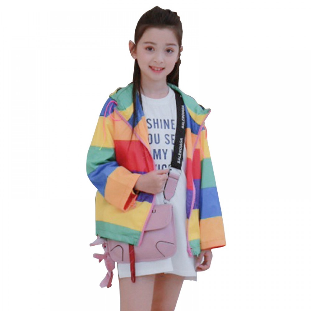 Children's clothing autumn new girl thin windbreaker long-sleeved color matching hooded jacket in the big boy coat female