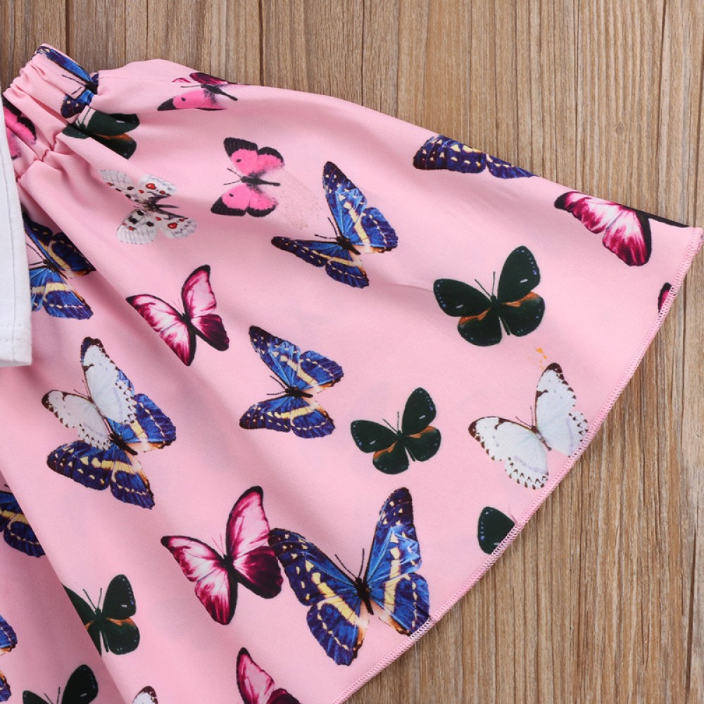 Children's clothing new summer style butterfly print round neck short sleeve top skirt two-piece suit