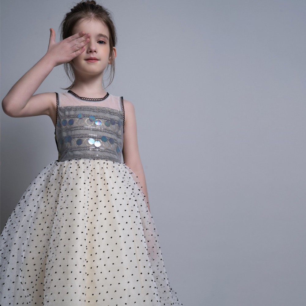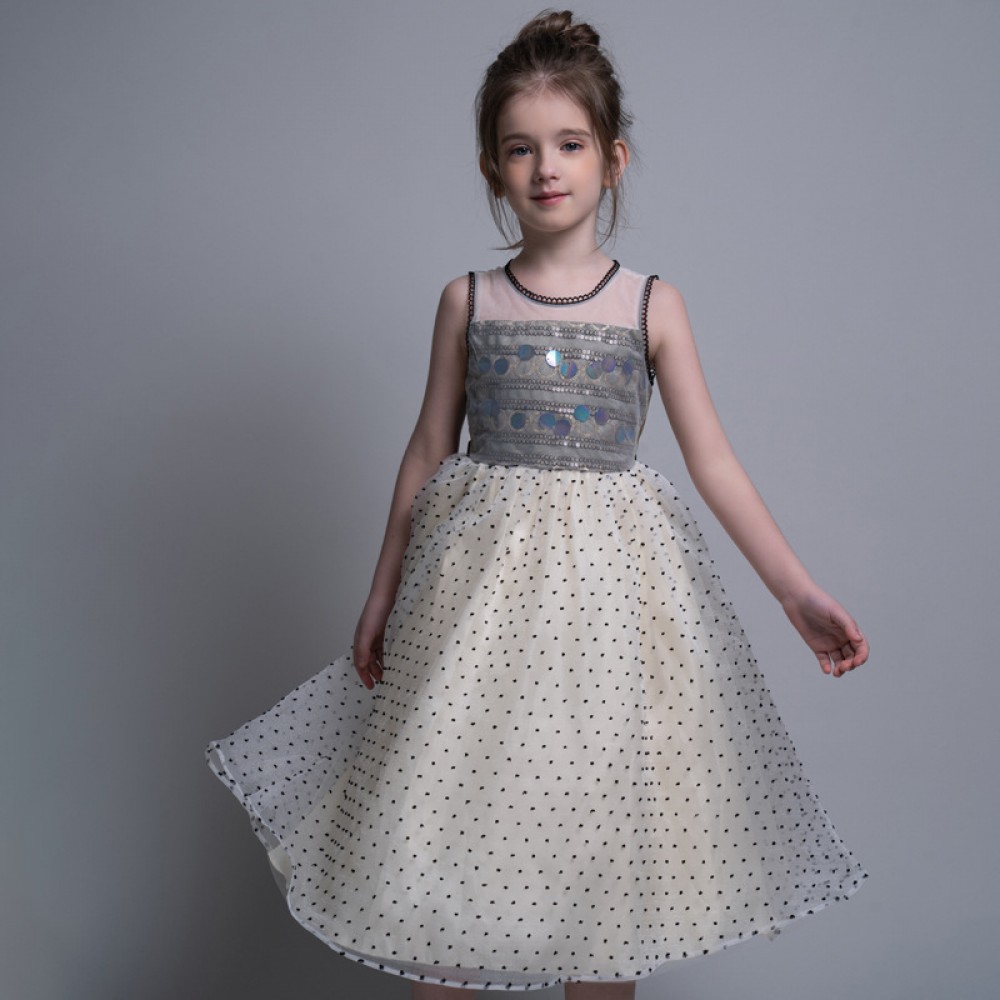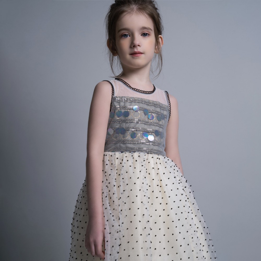 Children's clothing sequins short-sleeved girl princess skirt polka dot dress