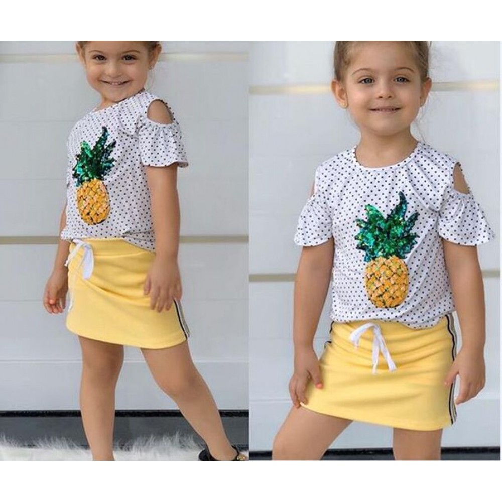 Children's clothing summer children's new suit female strapless wave point pineapple short sleeve straight lace skirt suit
