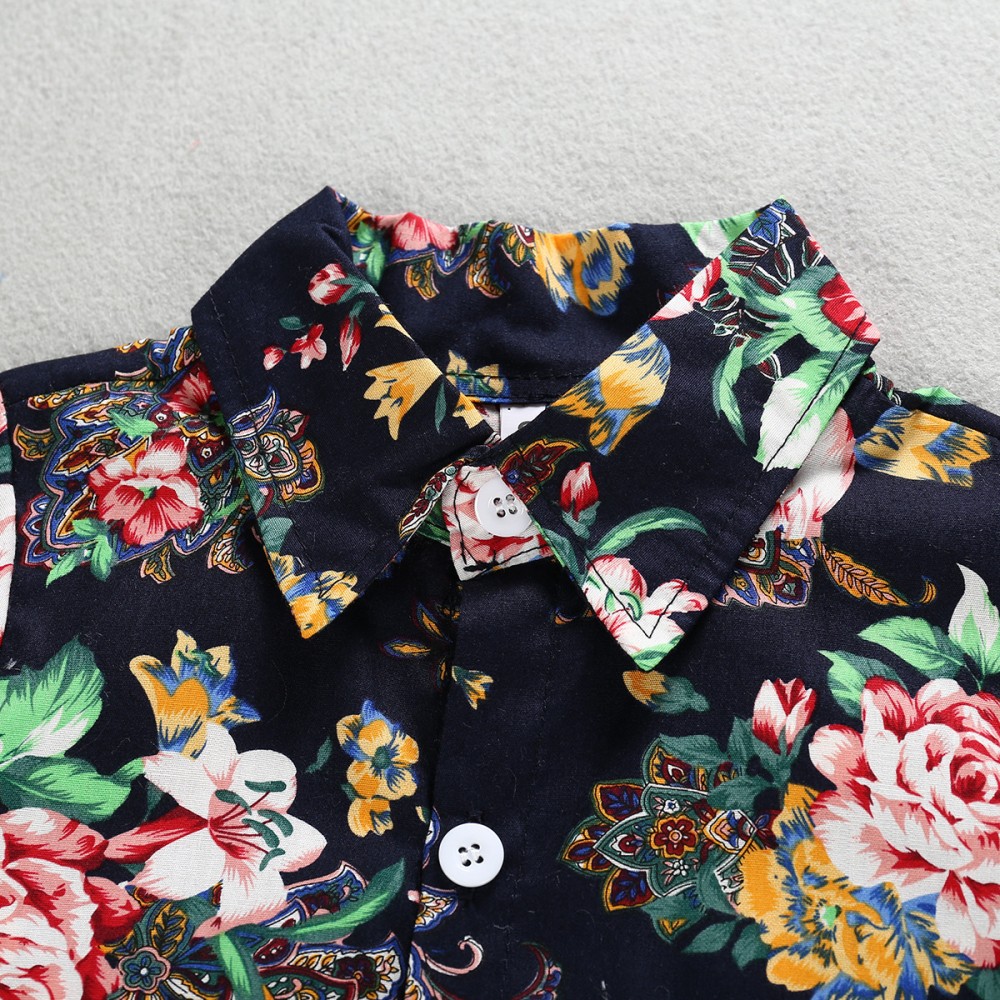 Children's clothing summer children's suit boy retro flower shirt white shorts two-piece set