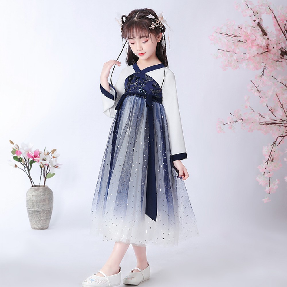 Children's Hanfu jacket skirt girls costume super fairy Chinese style clothing spring and summer new gradient dress