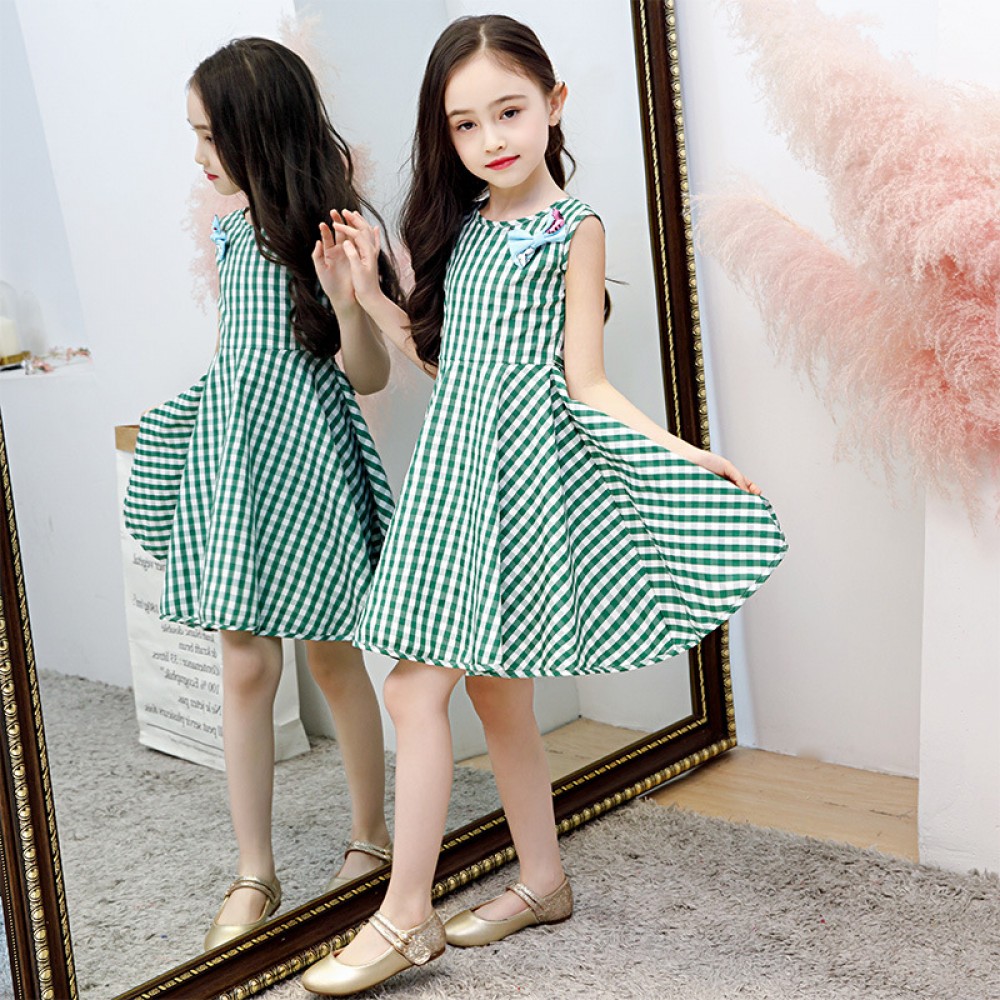 Children's summer new girl plaid vest skirt female baby princess dress