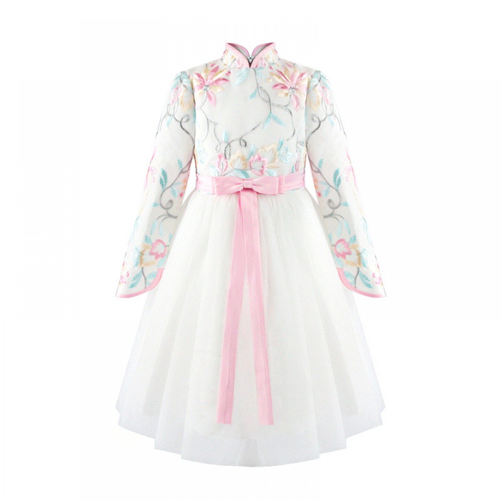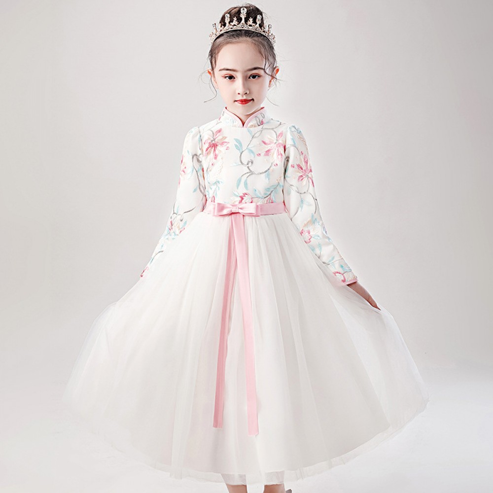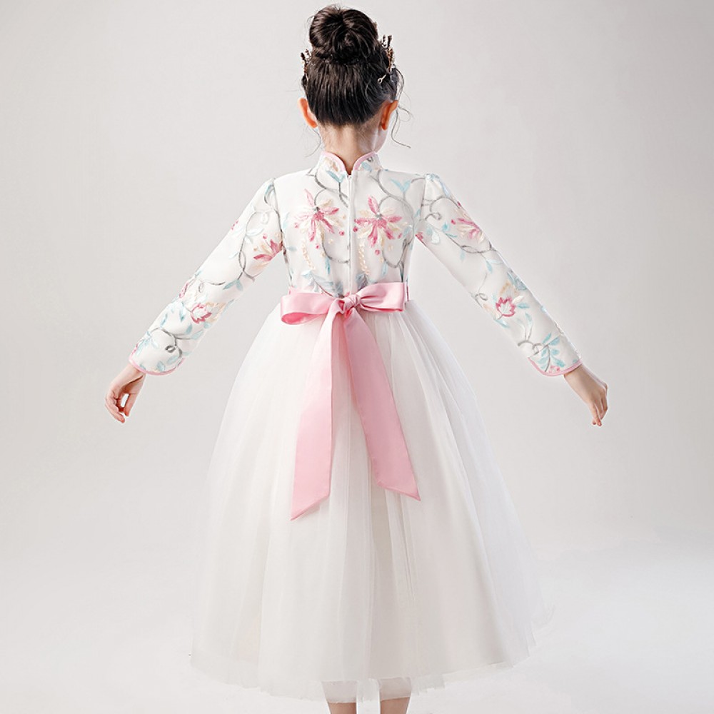 Chinese style princess skirt Hanfu skirt retro girl embroidery middle and big children dress net yarn show dress