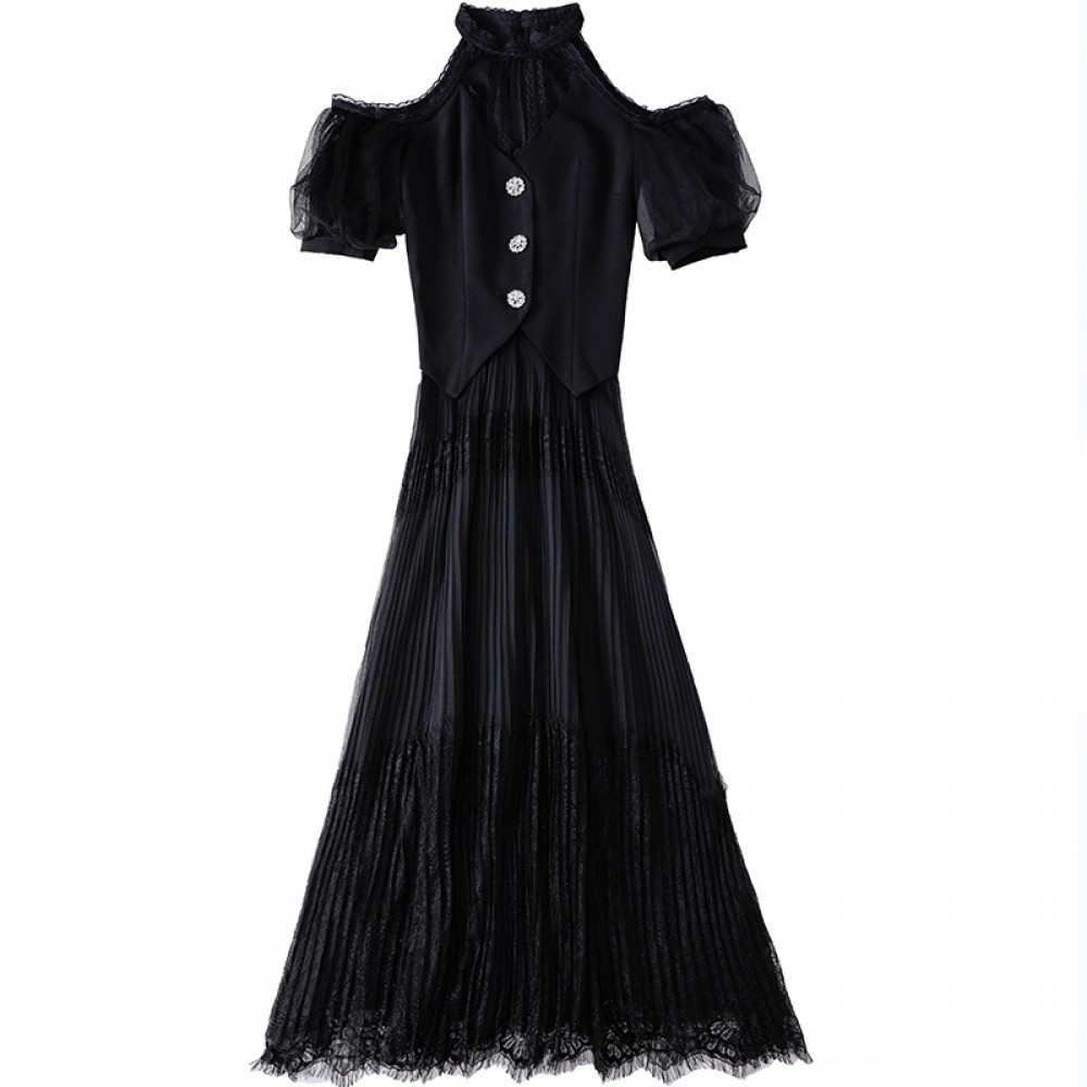 Dress Women's New Spring Chiffon V-Neck Strapless Sexy Lantern Sleeve Mesh Lace Irregular Skirt