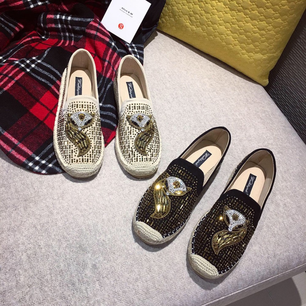 Early spring new fashion casual lazy shoes female wild rhinestone flat bottom shoes straw fisherman shoes female