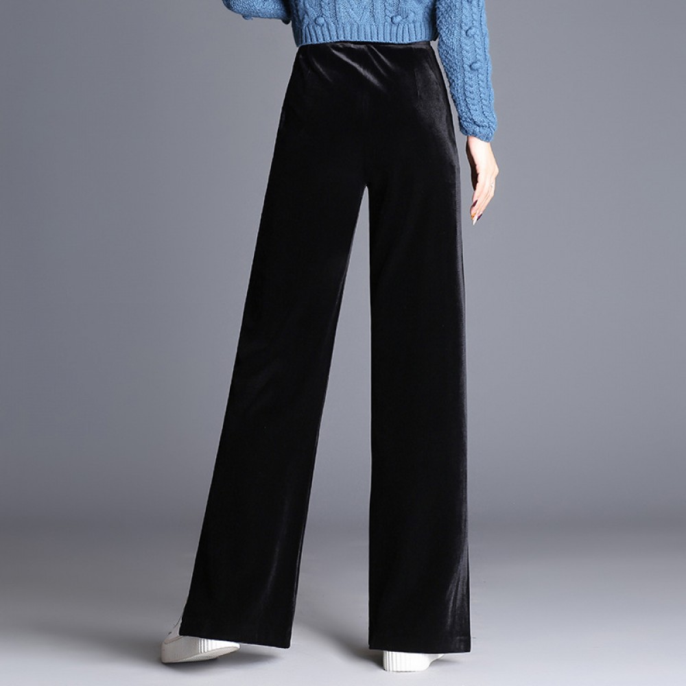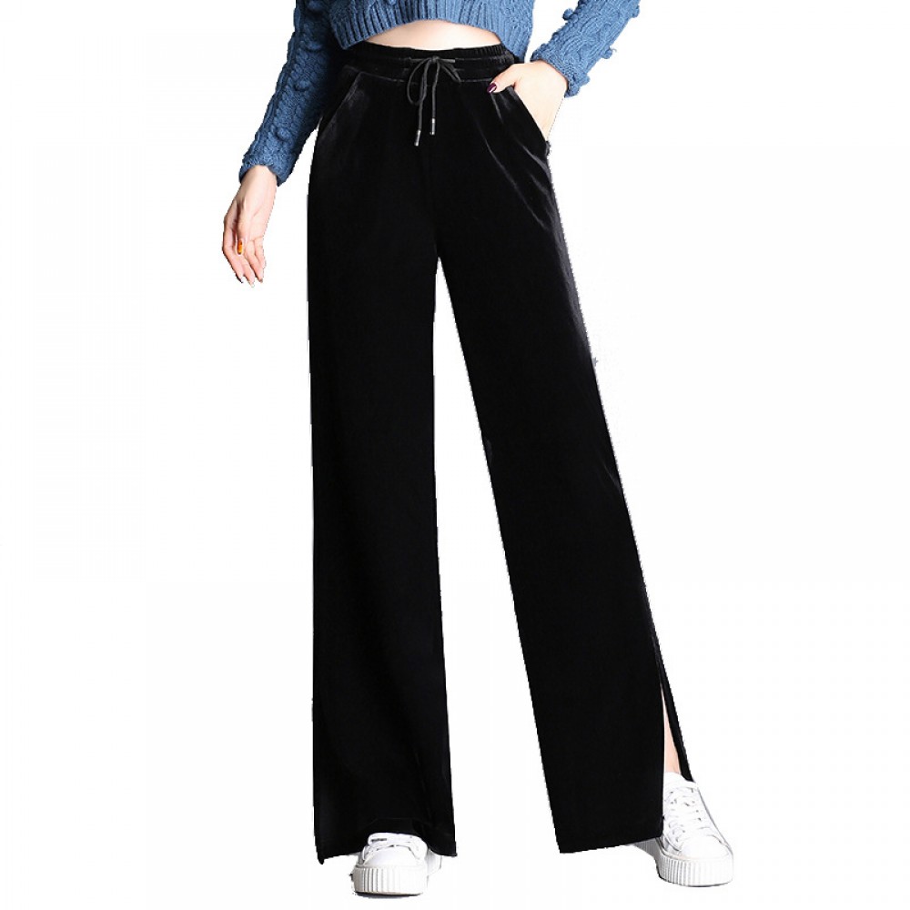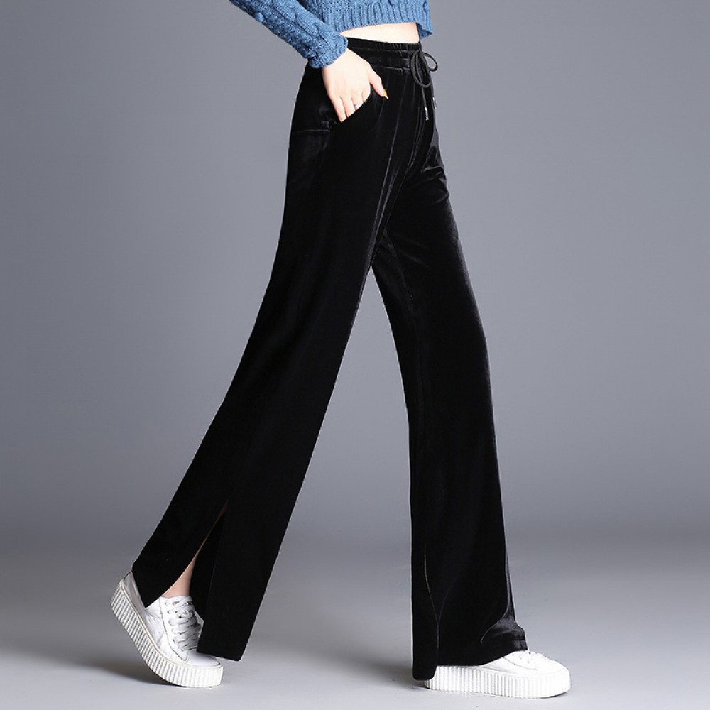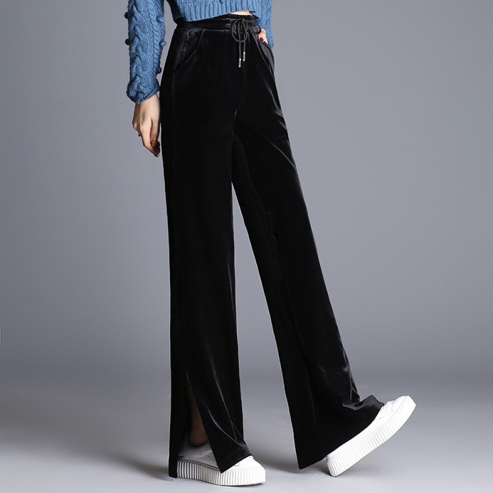 European station spring and autumn new gold velvet casual pants high waist split female loose plus velvet straight wide leg pants