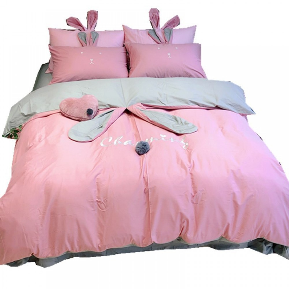 Explosion new embroidered three-dimensional ears cute rabbits Mo Xiong cotton four-piece suit