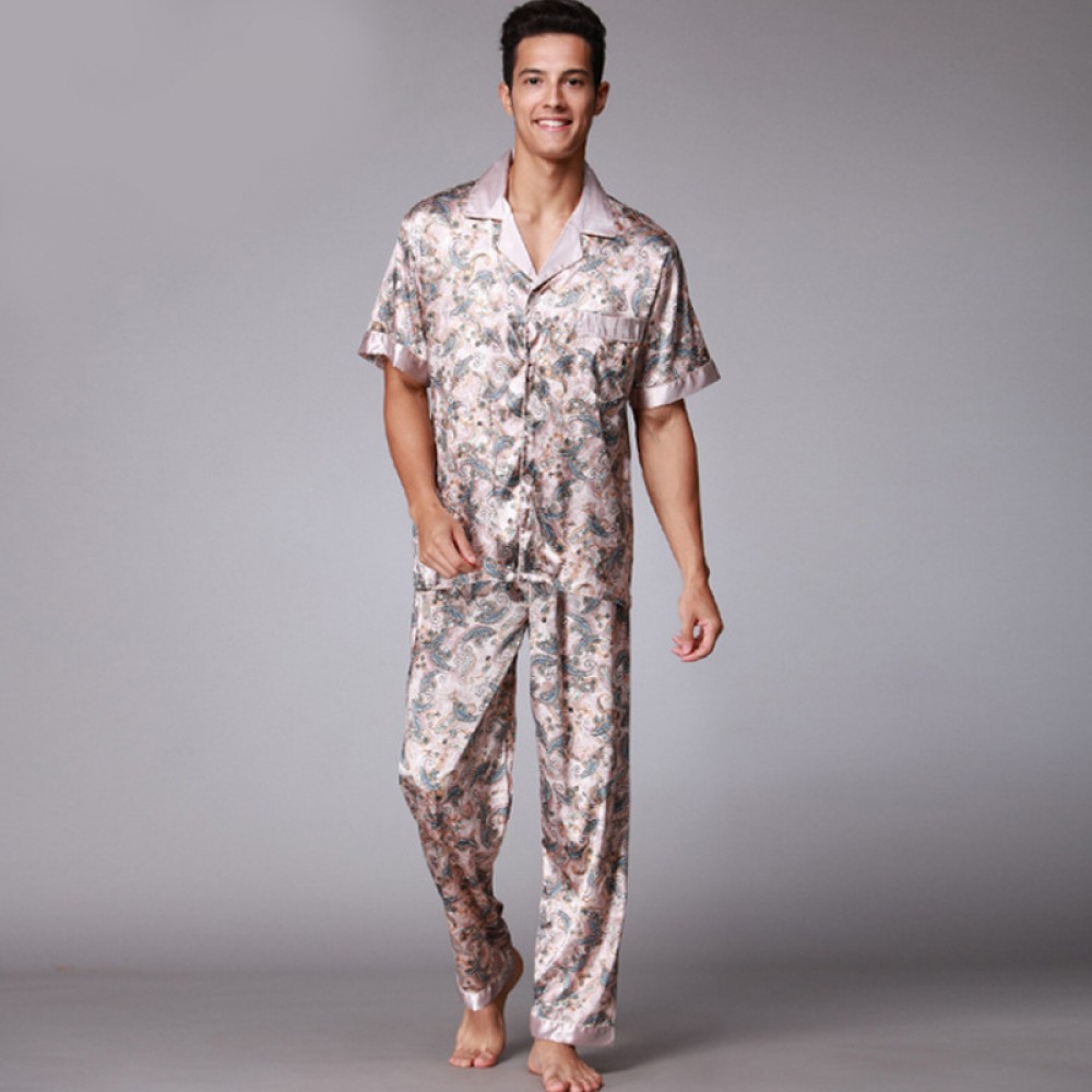 Explosion silk pajamas spring and summer two-piece suit dragon robe texture medium-sleeved trousers home service