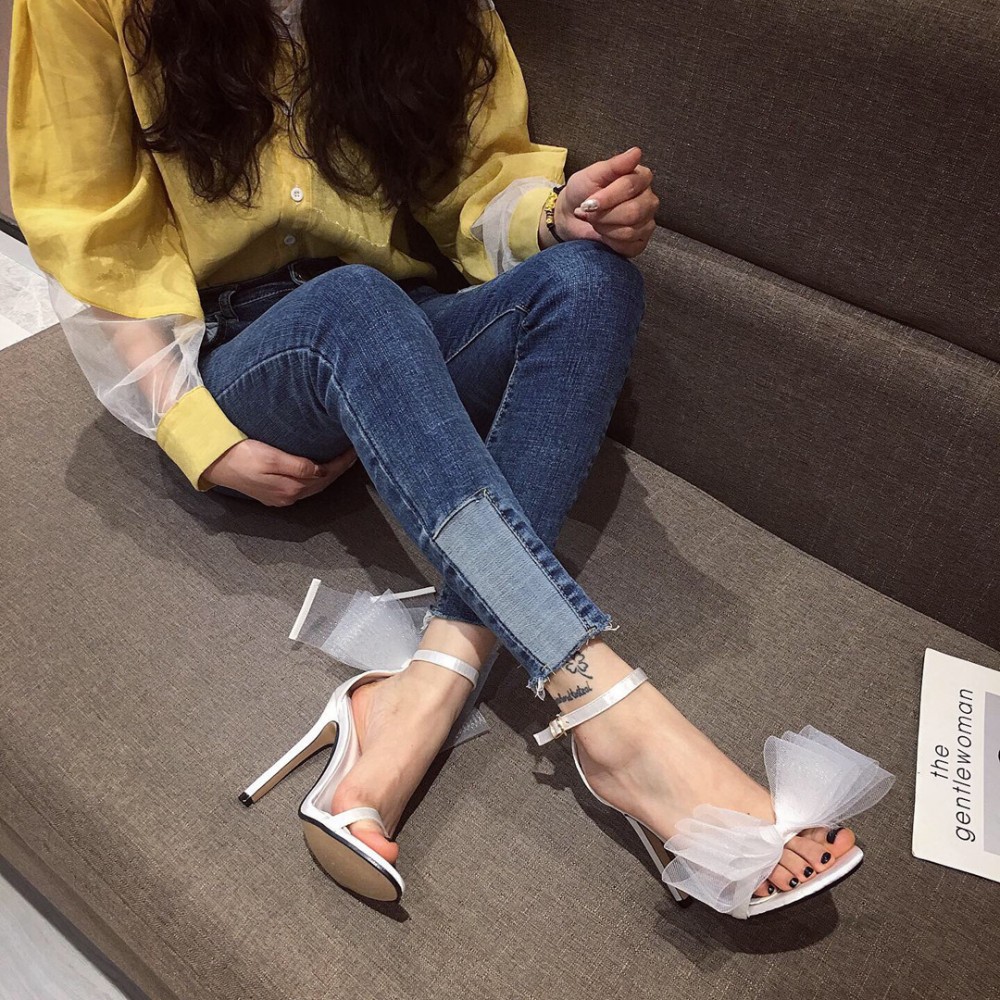 Fashion summer word buckle wild bow open toe fine high heel OL women's sandals
