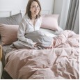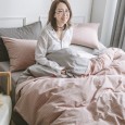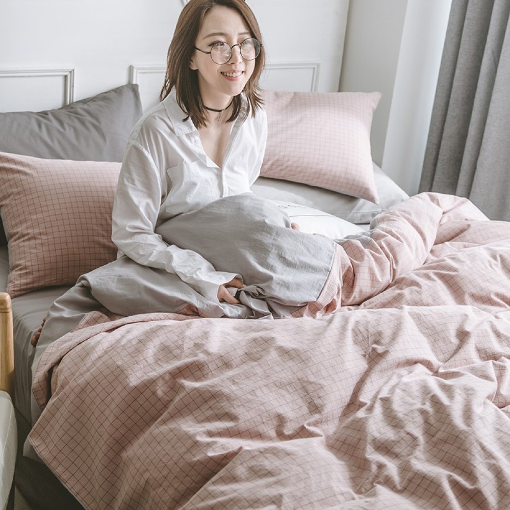 Fashionable Japanese Washed Cotton Simple Striped Lattice Cotton Bedding 1.5m1.8 Meter Bed Sheet Four-piece Set