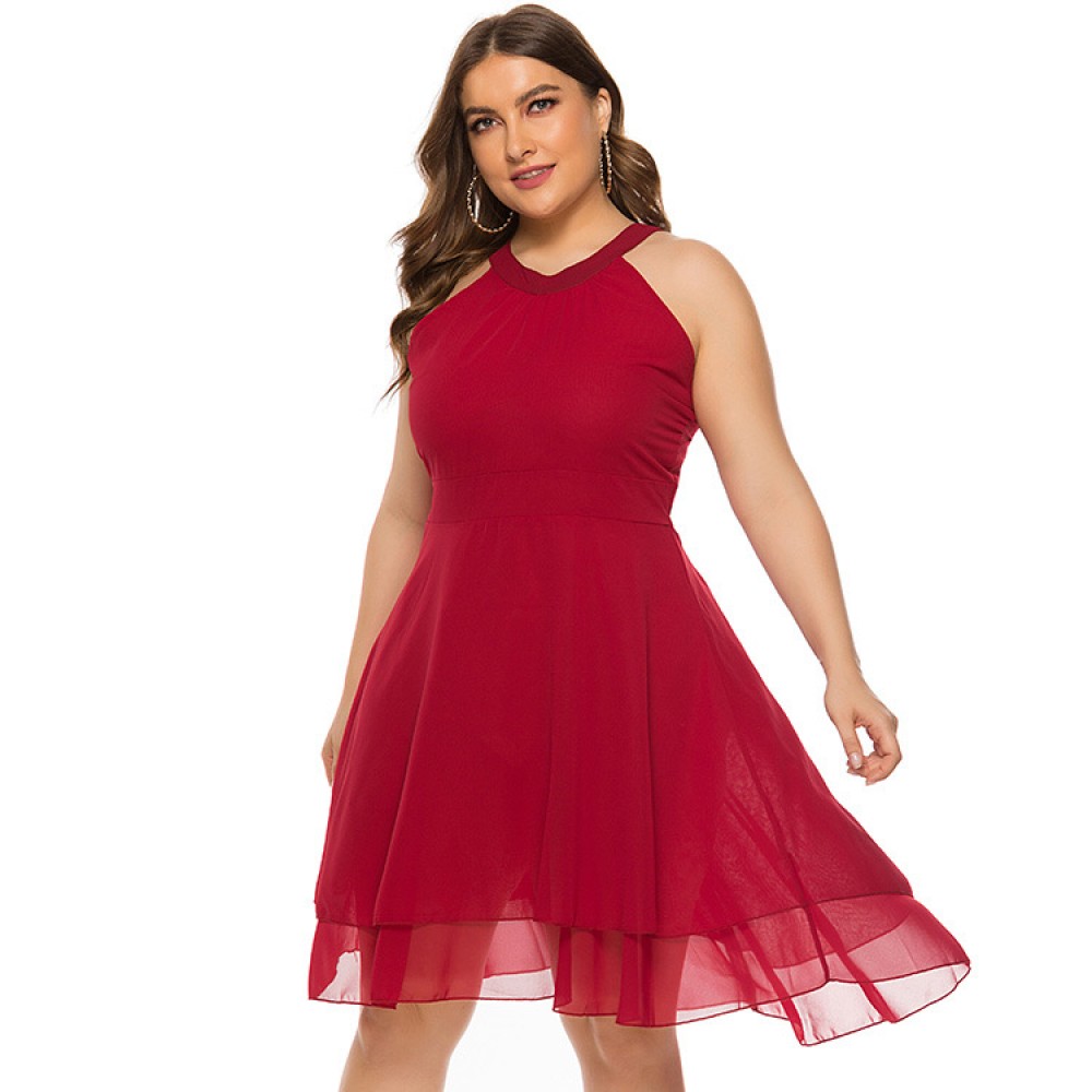 Fat mm large size women's dress hanging neck sleeveless chiffon dress skirt