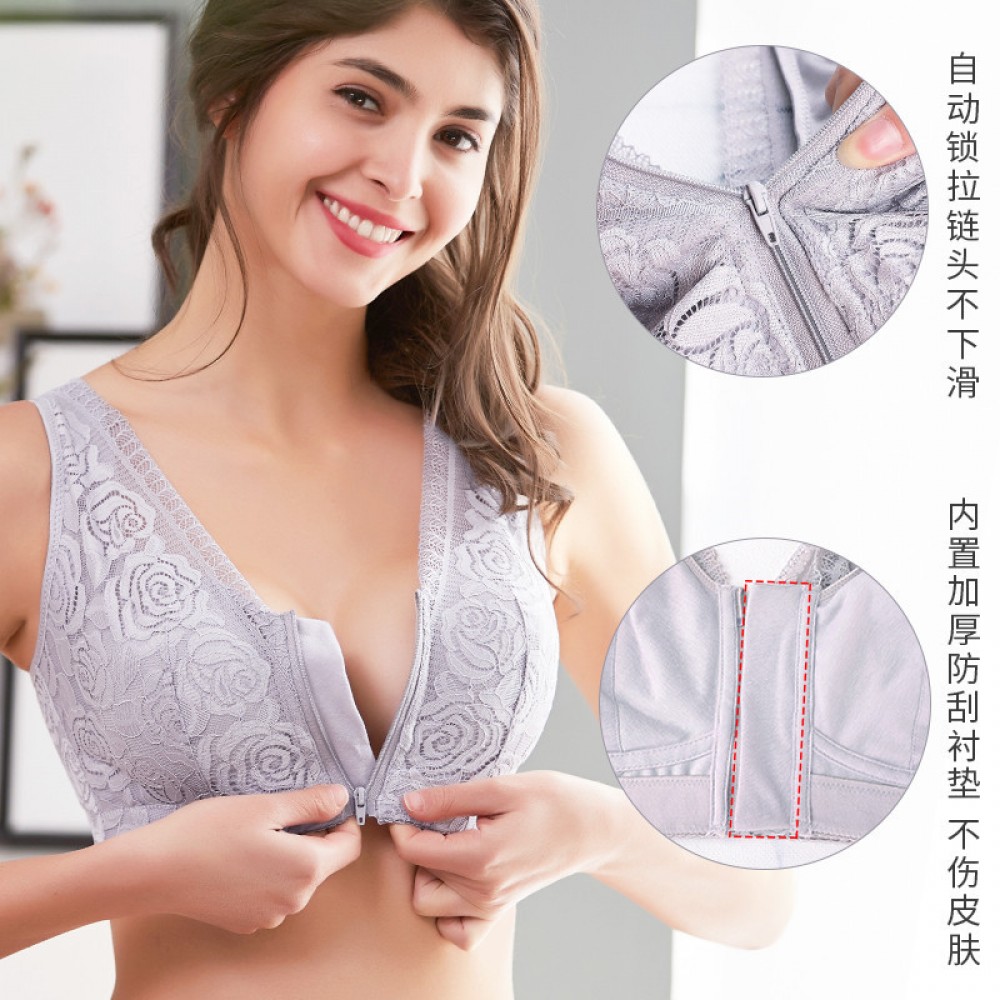 Front zipper shockproof sports underwear anti-sagging beauty back sleep large size bra without steel ring vest bra