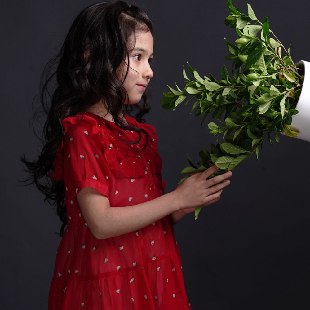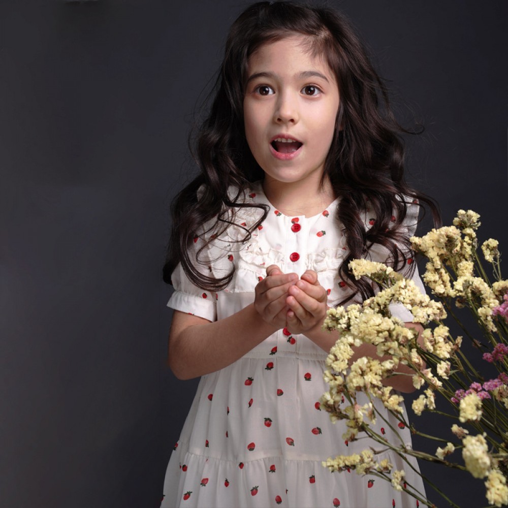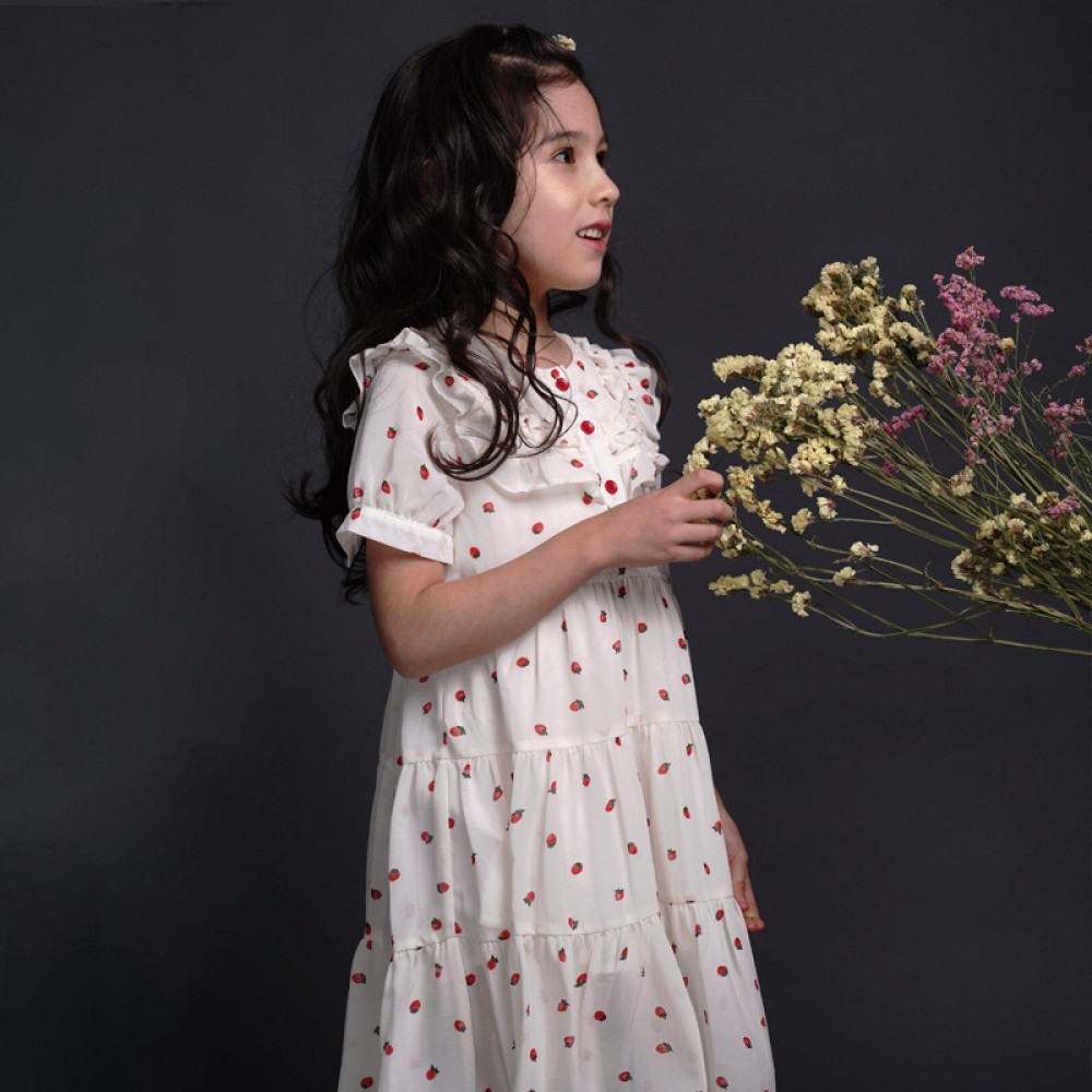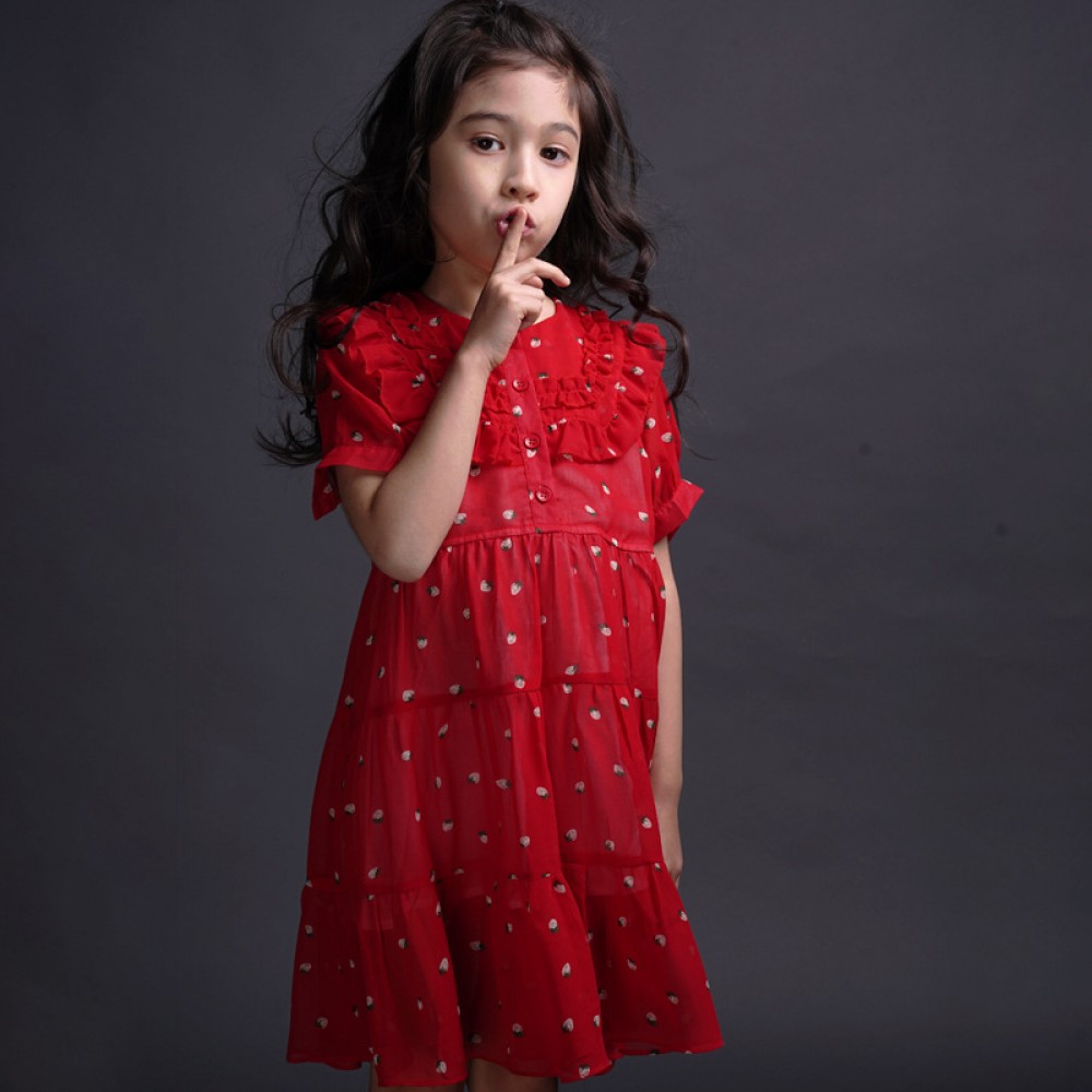 Girls' little strawberry chiffon dress children's round neck foreign princess skirt summer big children's parent-child dress