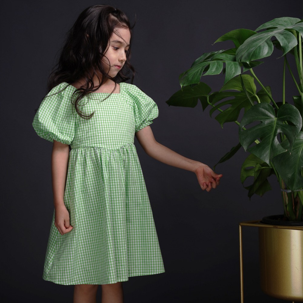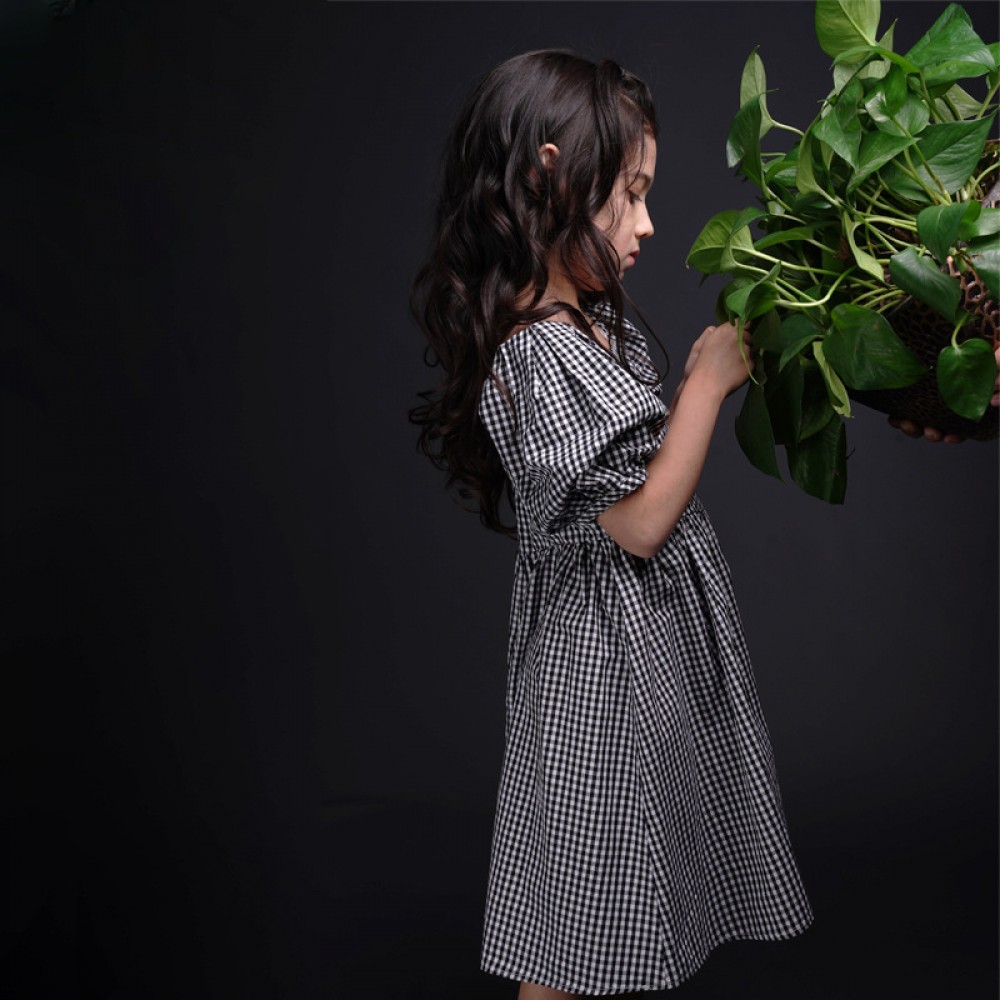 Girls' plaid short-sleeved dress, children's cotton summer dress, middle-aged children's parent-child dress