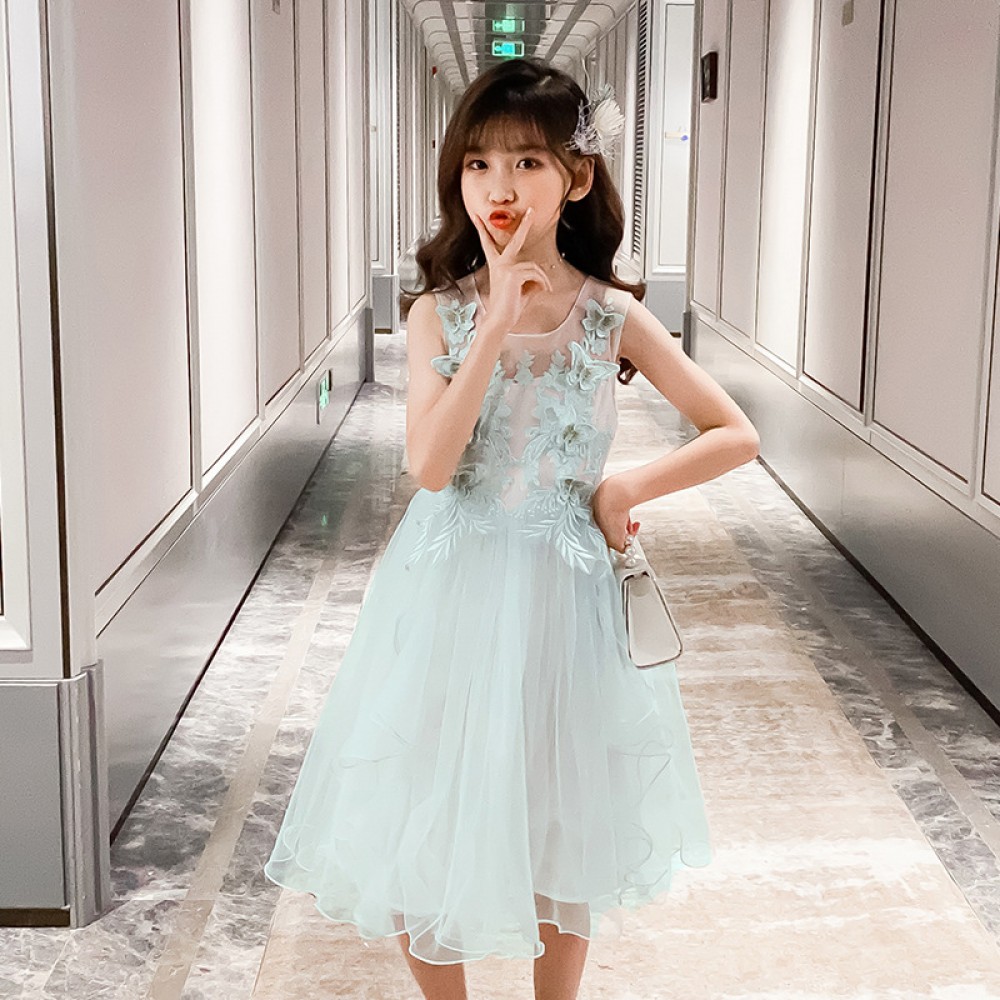 Girls' vests, summer dresses, new children's mesh princess skirts, middle-aged children's skirts