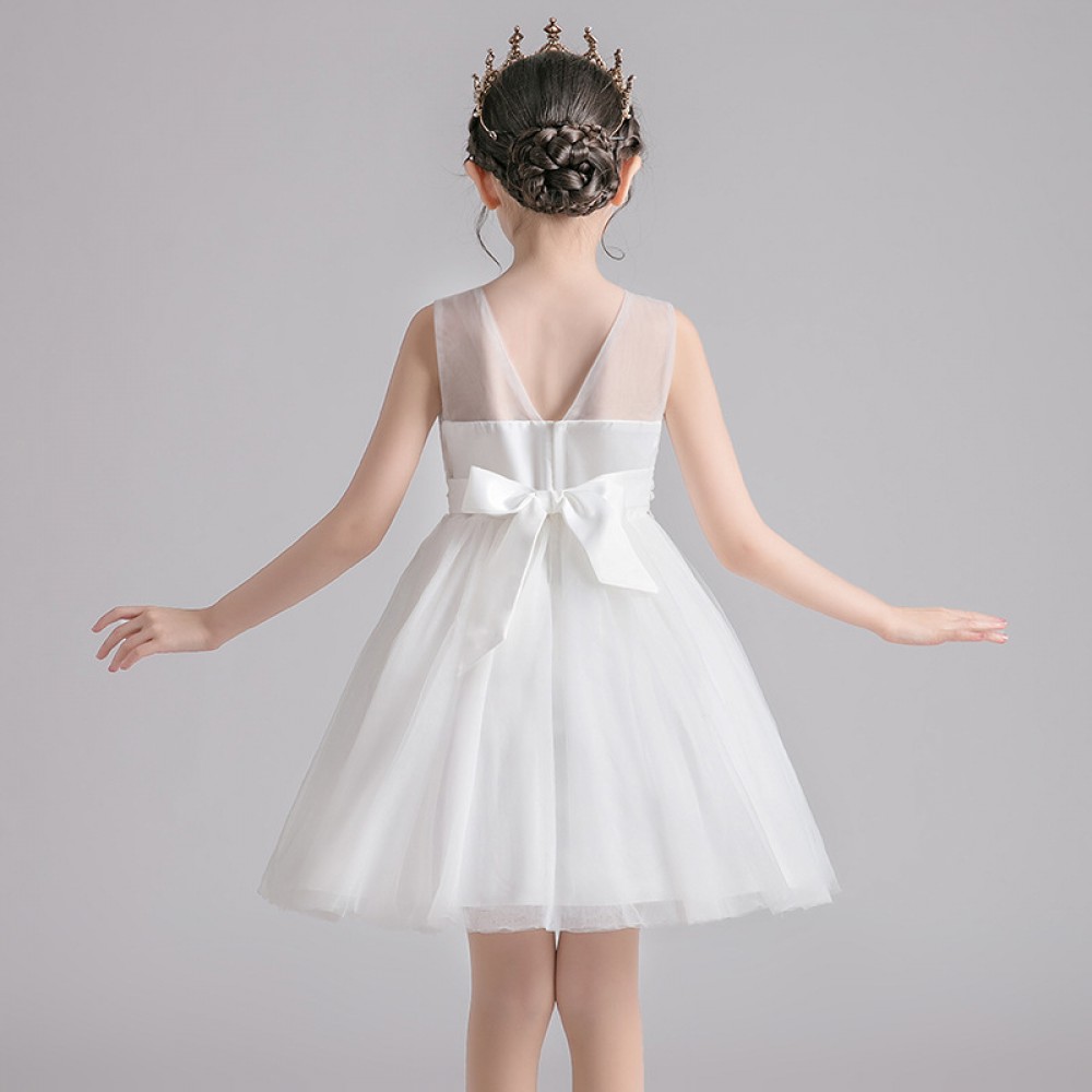 Girls dress embroidered flower dress white summer princess skirt cutout vest puffy mesh skirt show
