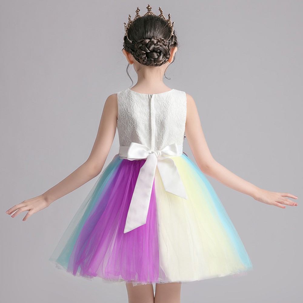 Girls dress new rainbow skirt summer gauze puffy princess skirt vest little girl child foreign host