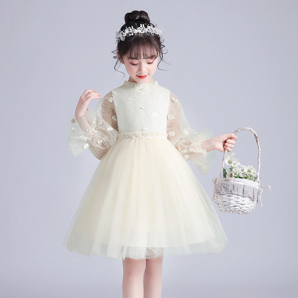 Girls long-sleeved dress spring and autumn new foreign style show dress princess style fluffy mesh skirt