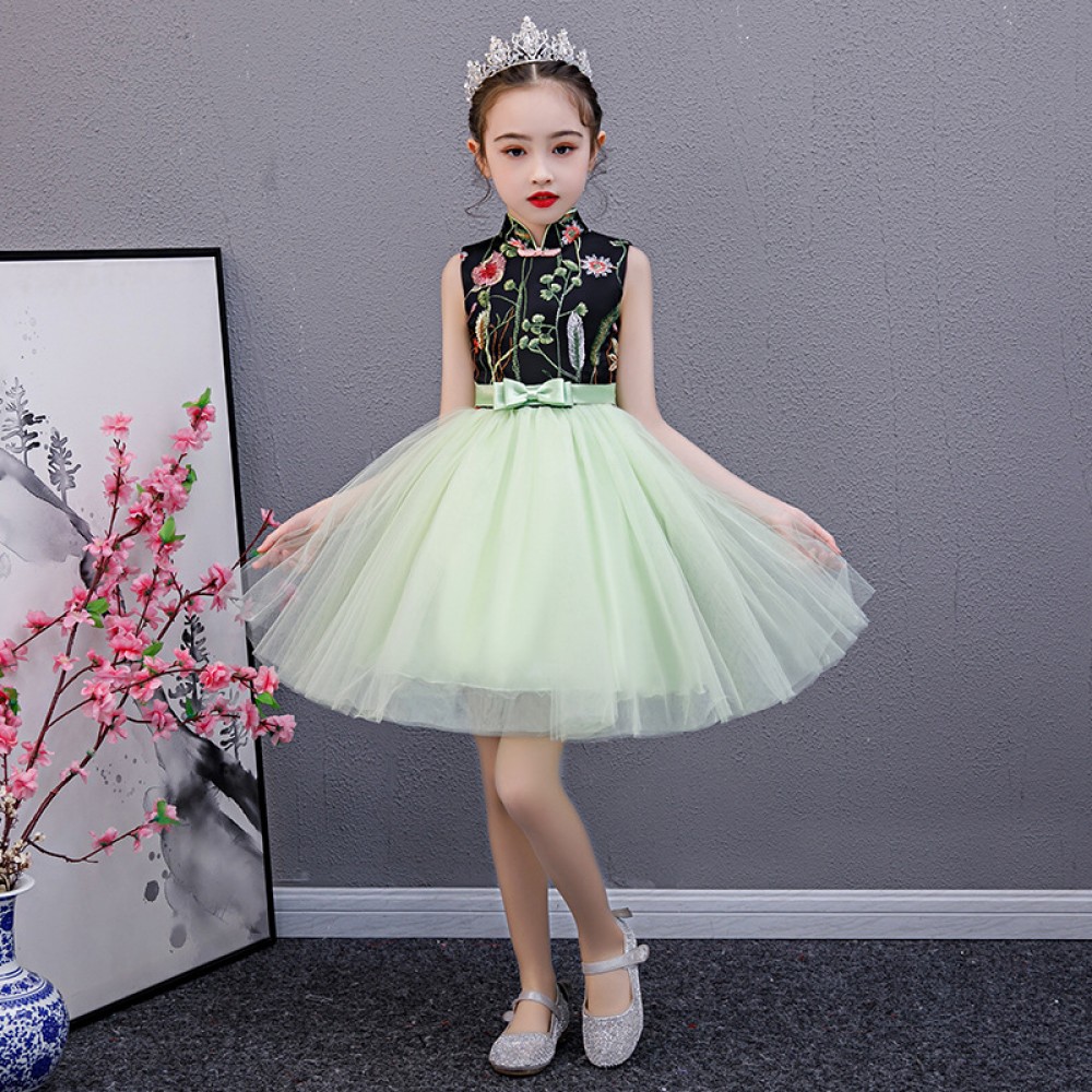 Girls skirt summer small and medium children's dress cheongsam puffy mesh gown skirt princess skirt embroidery dress