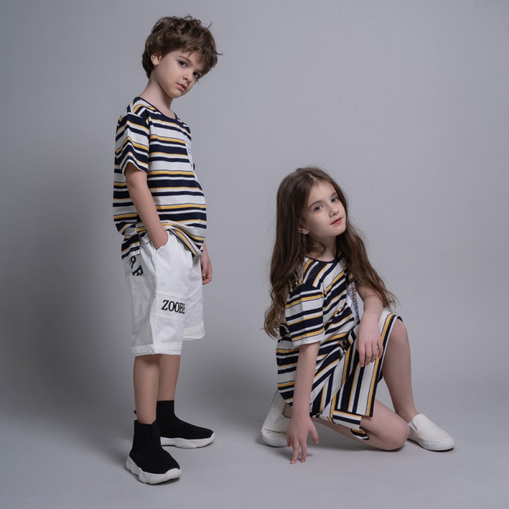 Girls Striped Straight Skirt Boys Round Neck Short Sleeve Summer Children Brother and Sister Dresses