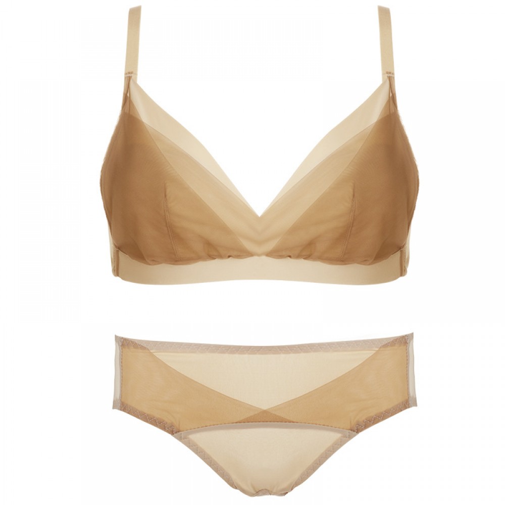High-end withered rose no trace no steel ring bra new thin section gathered comfortable sexy underwear set