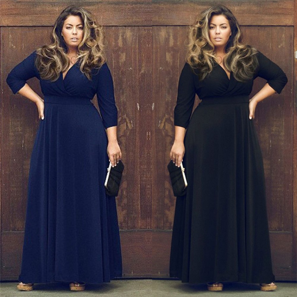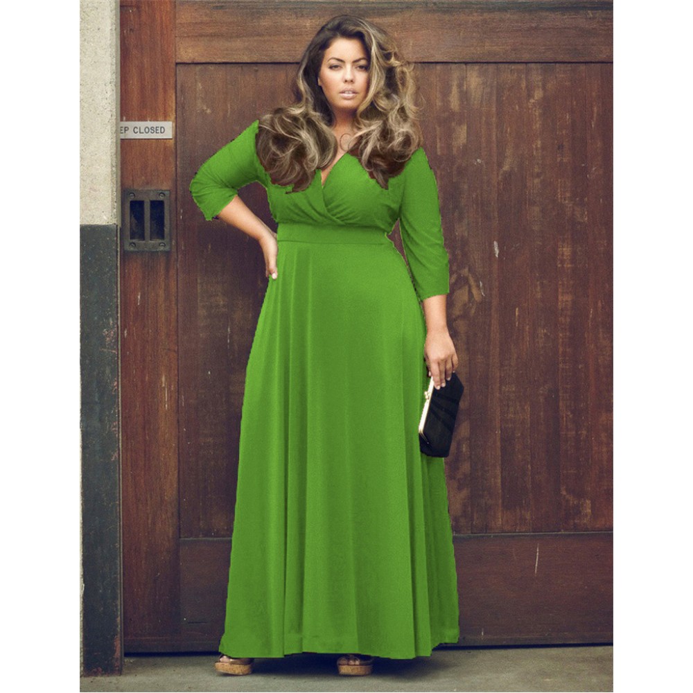 Hot sale new women's plus size deep V net color big swing skirt 7 colors optional sexy dress