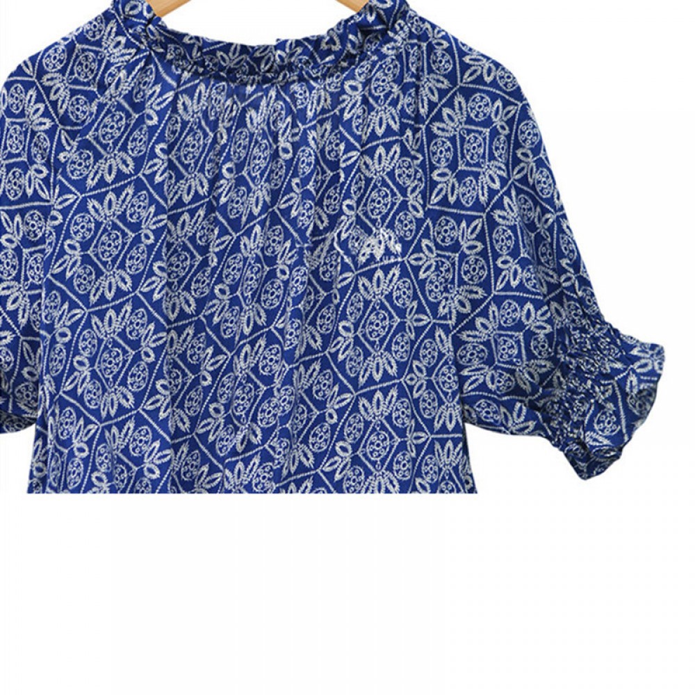 Hot selling summer women's new short-sleeved printed cotton casual wild V-neck button dress