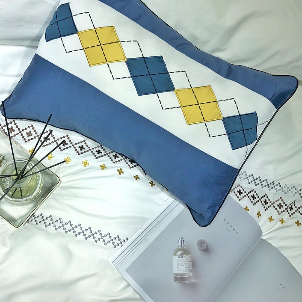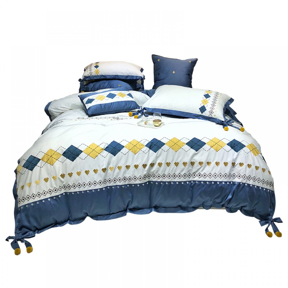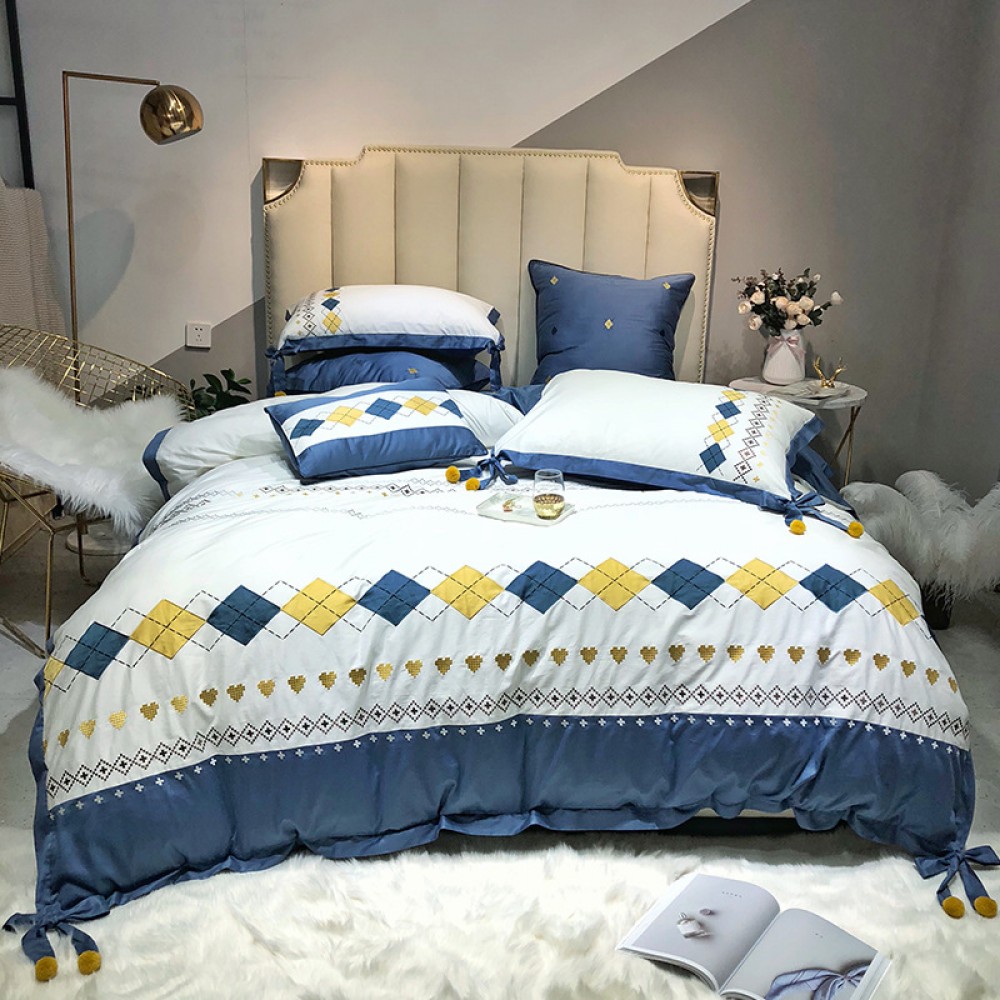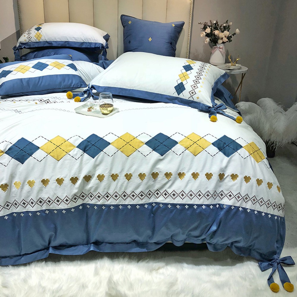 Jane European style 60 Egyptian long-staple cotton bedding cotton diamond lattice stitching embroidery simple four-piece set