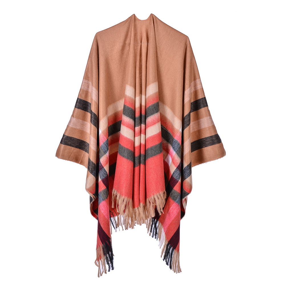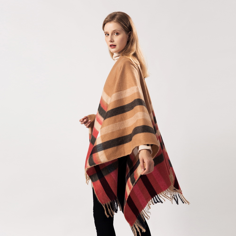 Ladies scarf autumn and winter bristle plaid tassel wild warm shawl cloak dual-use fashion