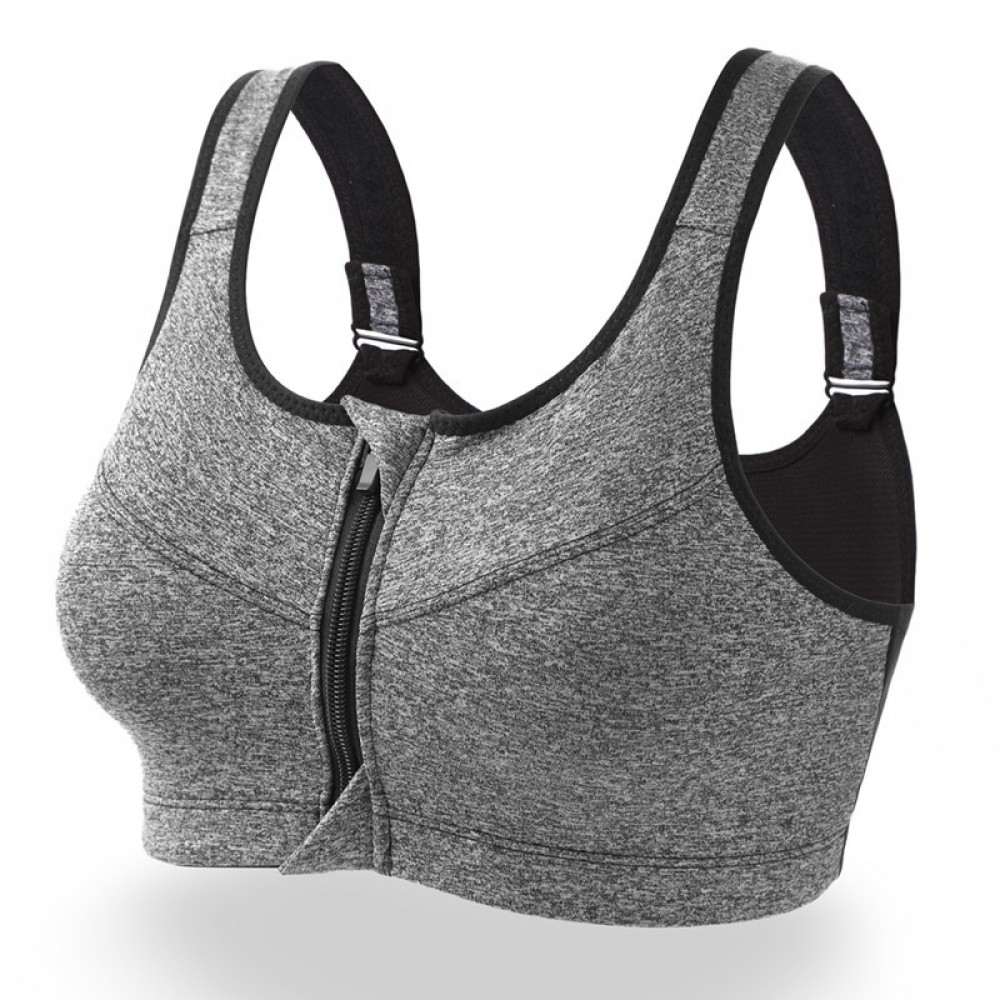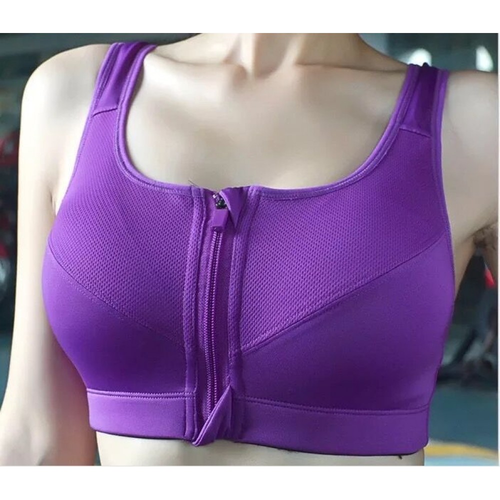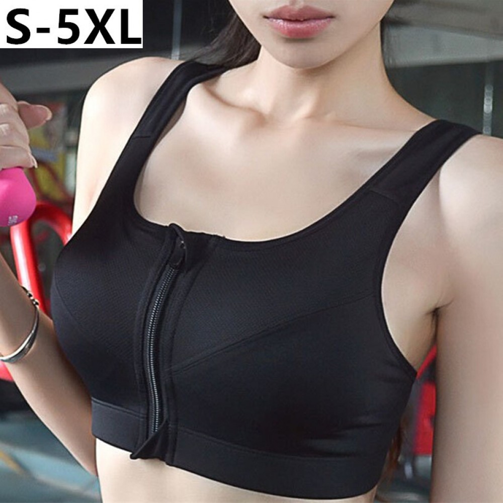 Large size front zipper sports bra without steel ring gathered yoga fitness shockproof running ladies underwear beauty vest