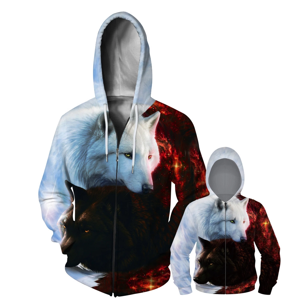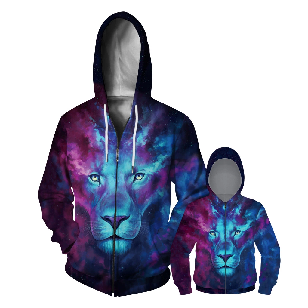 Lion digital printing parent-child zipper sweater sports casual autumn hooded long-sleeved outer wear