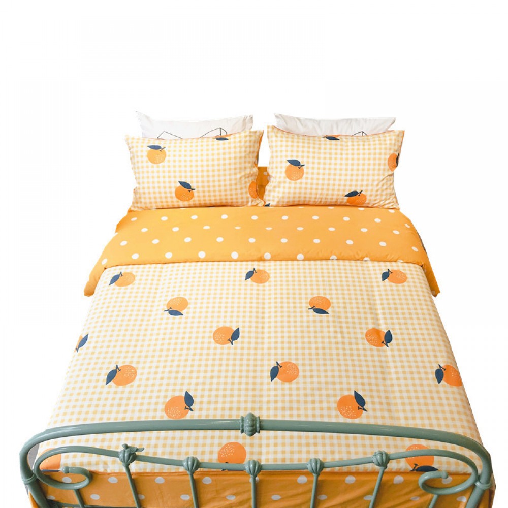 Little citrus, super sweet girl heart, yellow grid, cotton inlay, four-piece twill cotton, skin-friendly bedding