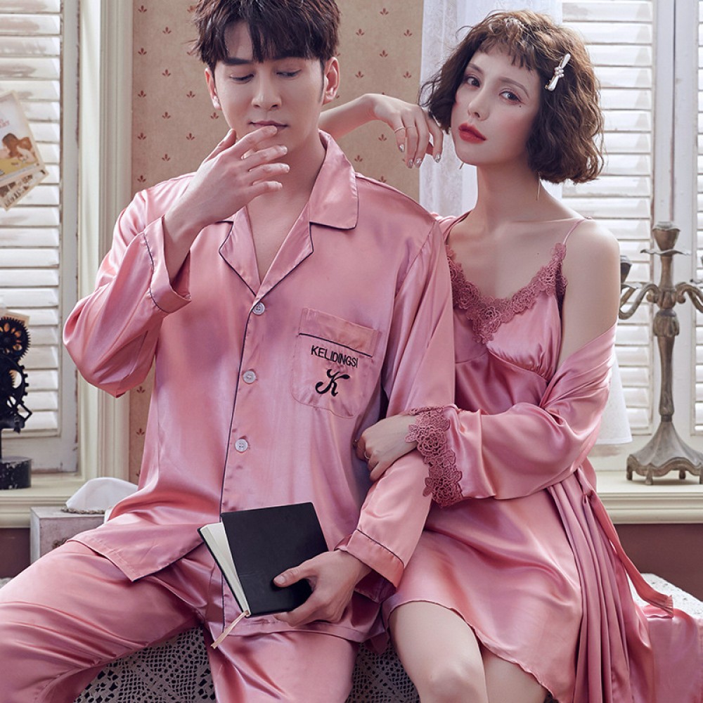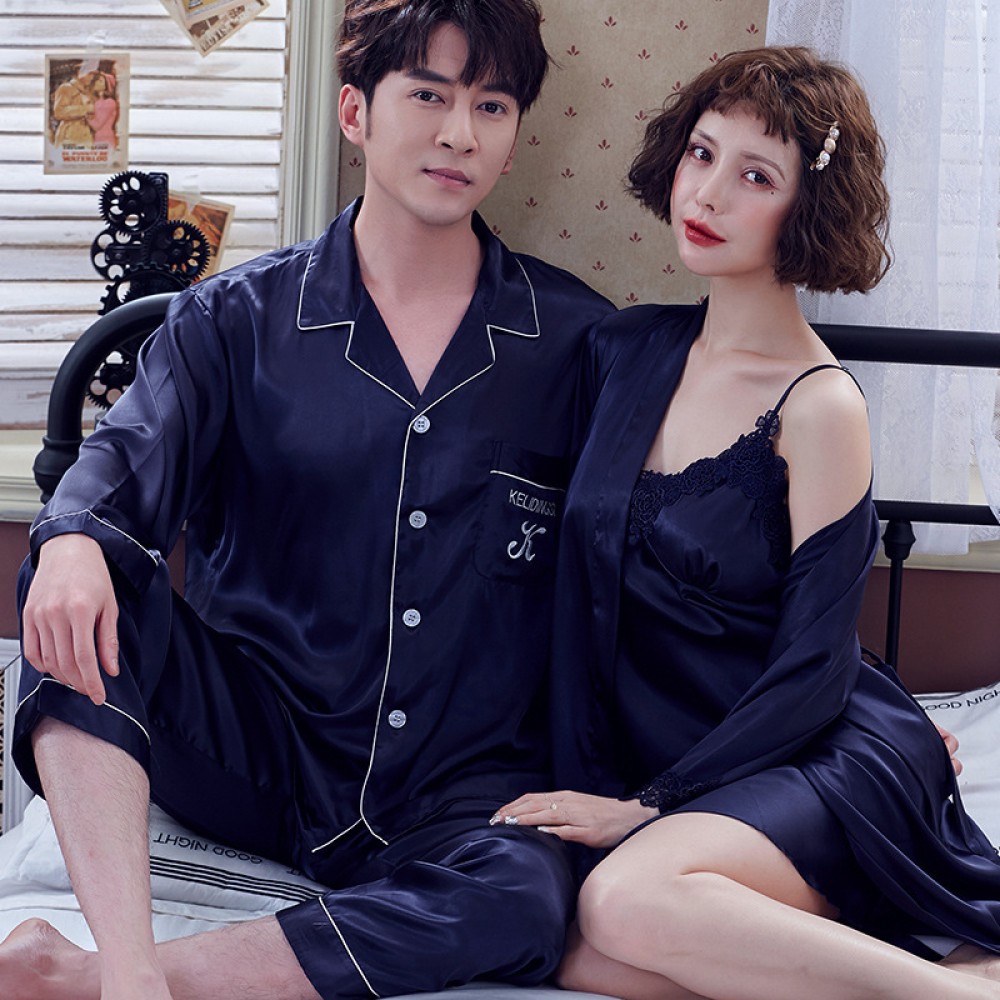 Lovers pajamas ladies summer Korean ice silk strap nightdress spring and autumn summer short sleeve trousers two-piece suit XA