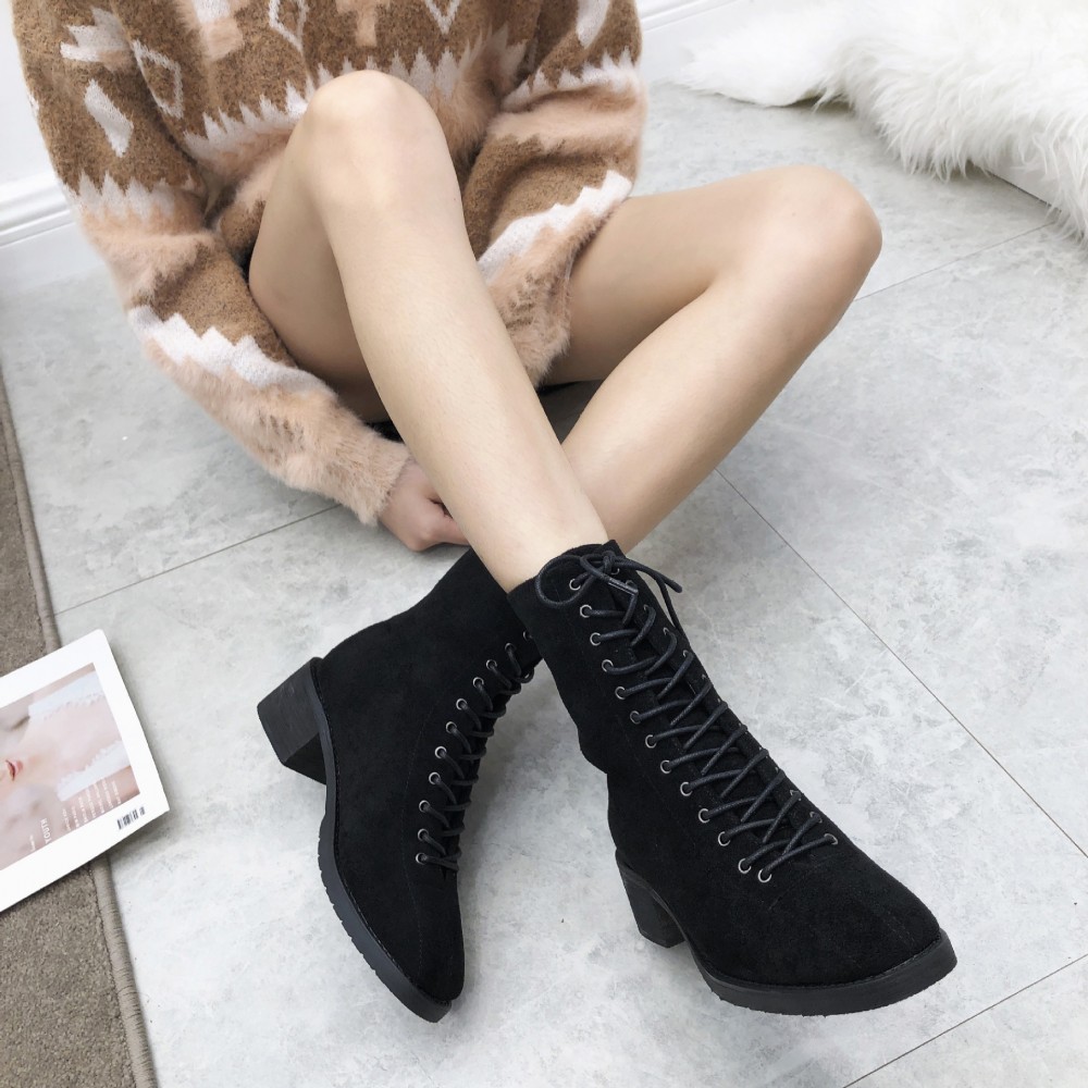 Martin boots women's style wild thick heel short boots boots winter suede middle heel motorcycle boots