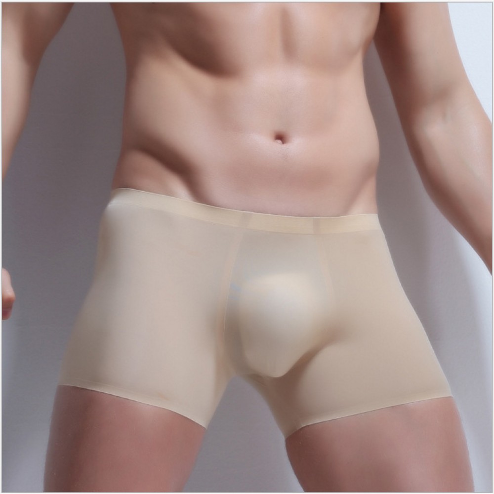 Men's body-shaping breathable ice silk seamless boxer pants solid color low waist sweat-absorbent green men's belly shaping underwear