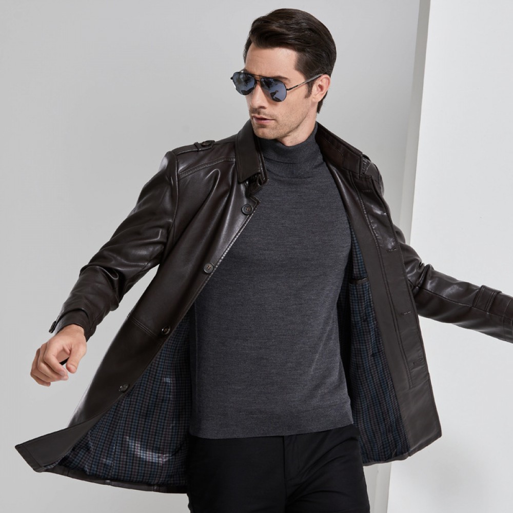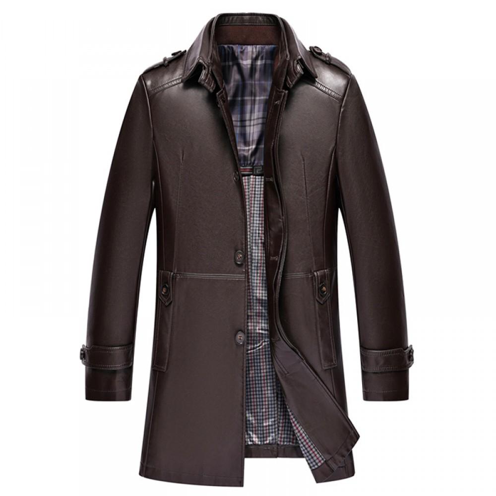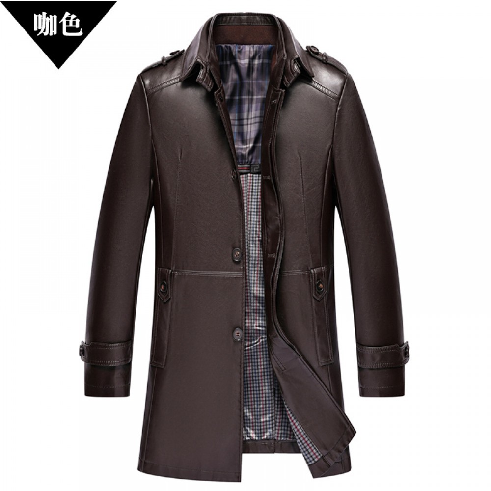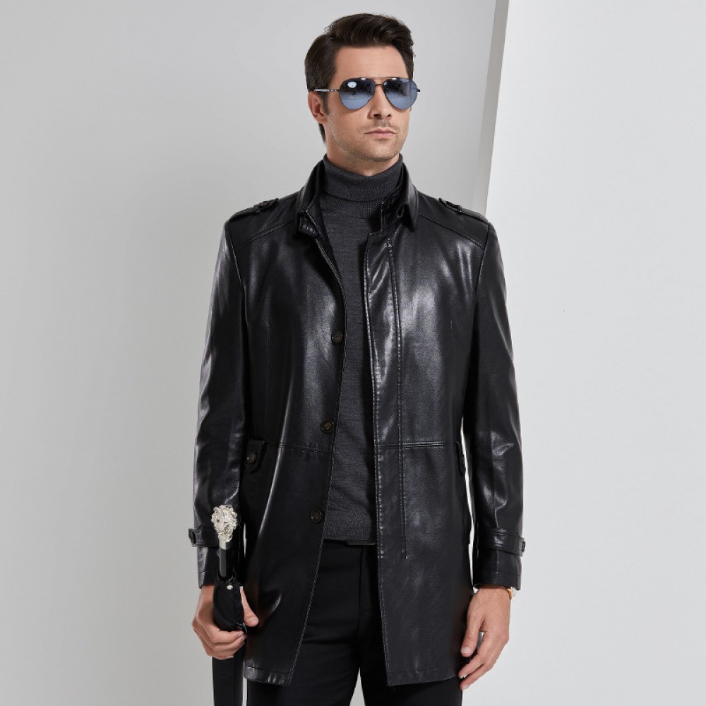 Men's ecological leather leather jacket in the long section of the stand collar leather jacket