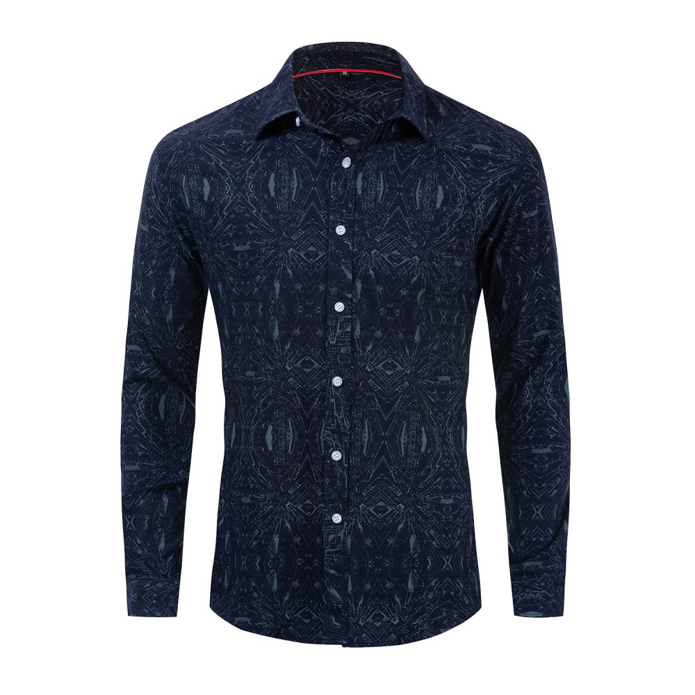 Men's spring and summer new cotton long-sleeved shirt casual printed shirt 187